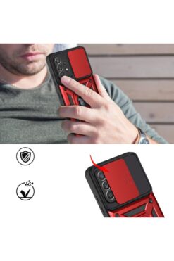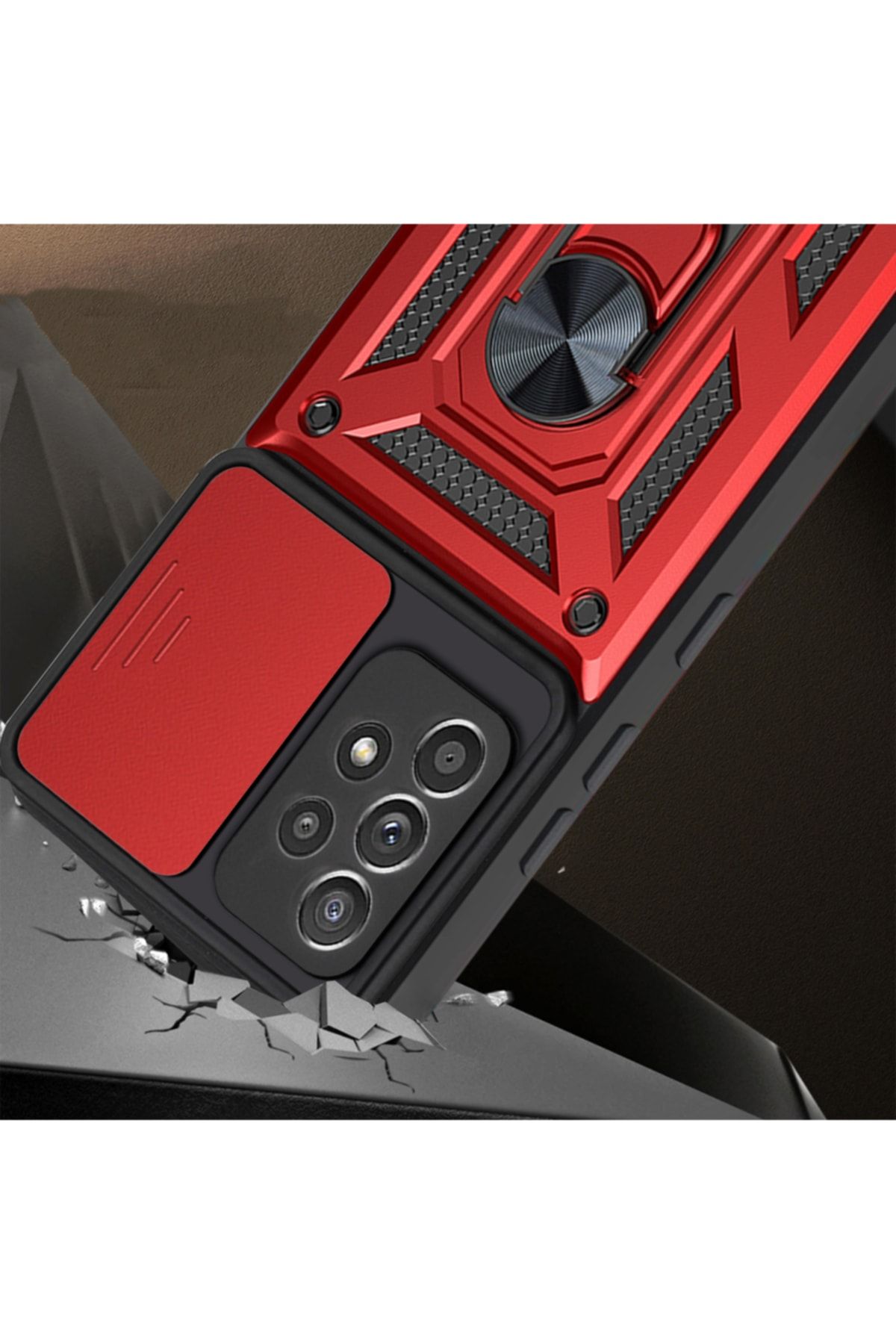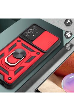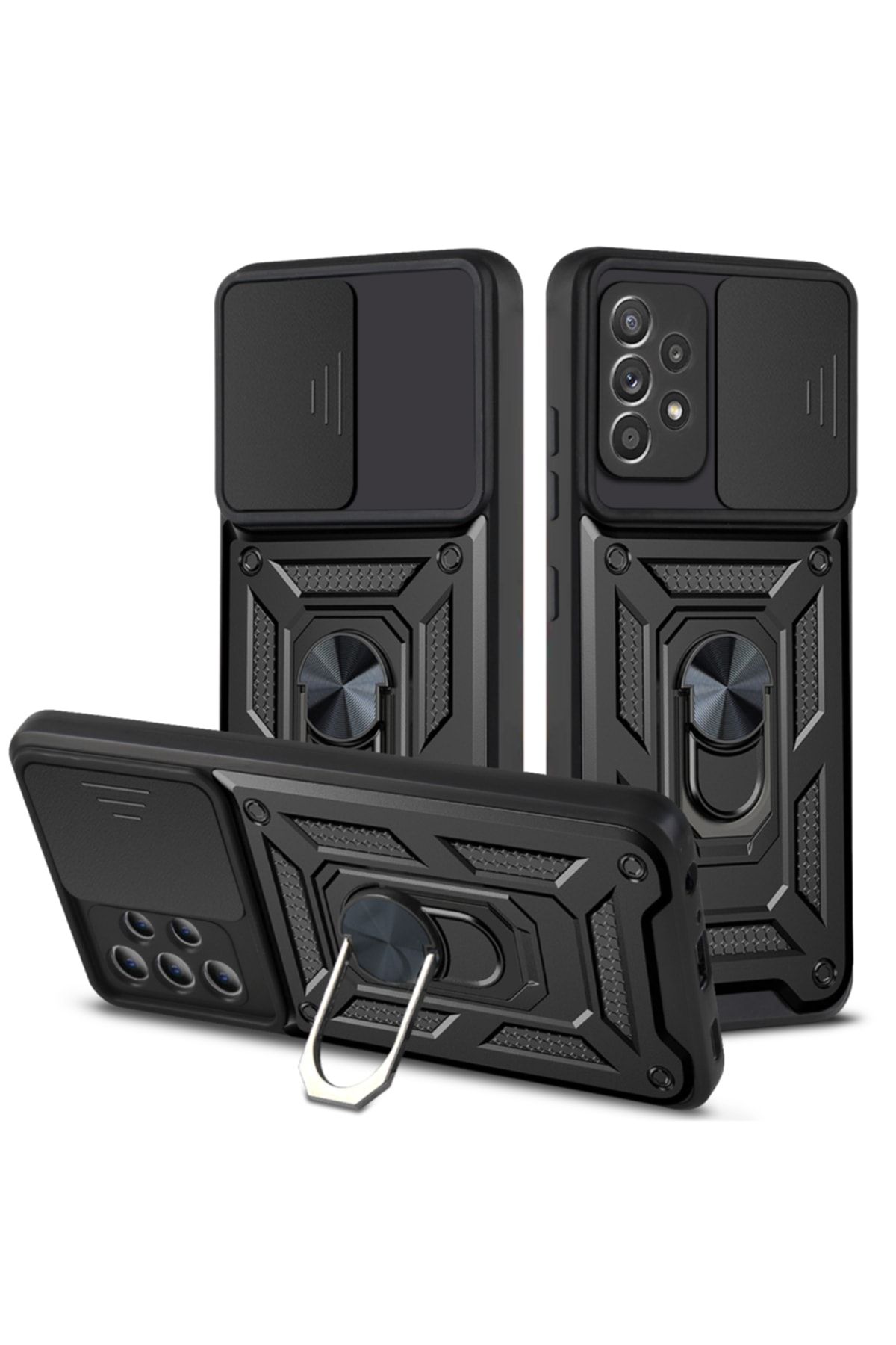 Fibaks Samsung Galaxy A32 4g Uyumlu Kılıf Kamera Korumalı Sürgülü Yüzüklü Armor Military Tank Zırhlı Kapak
