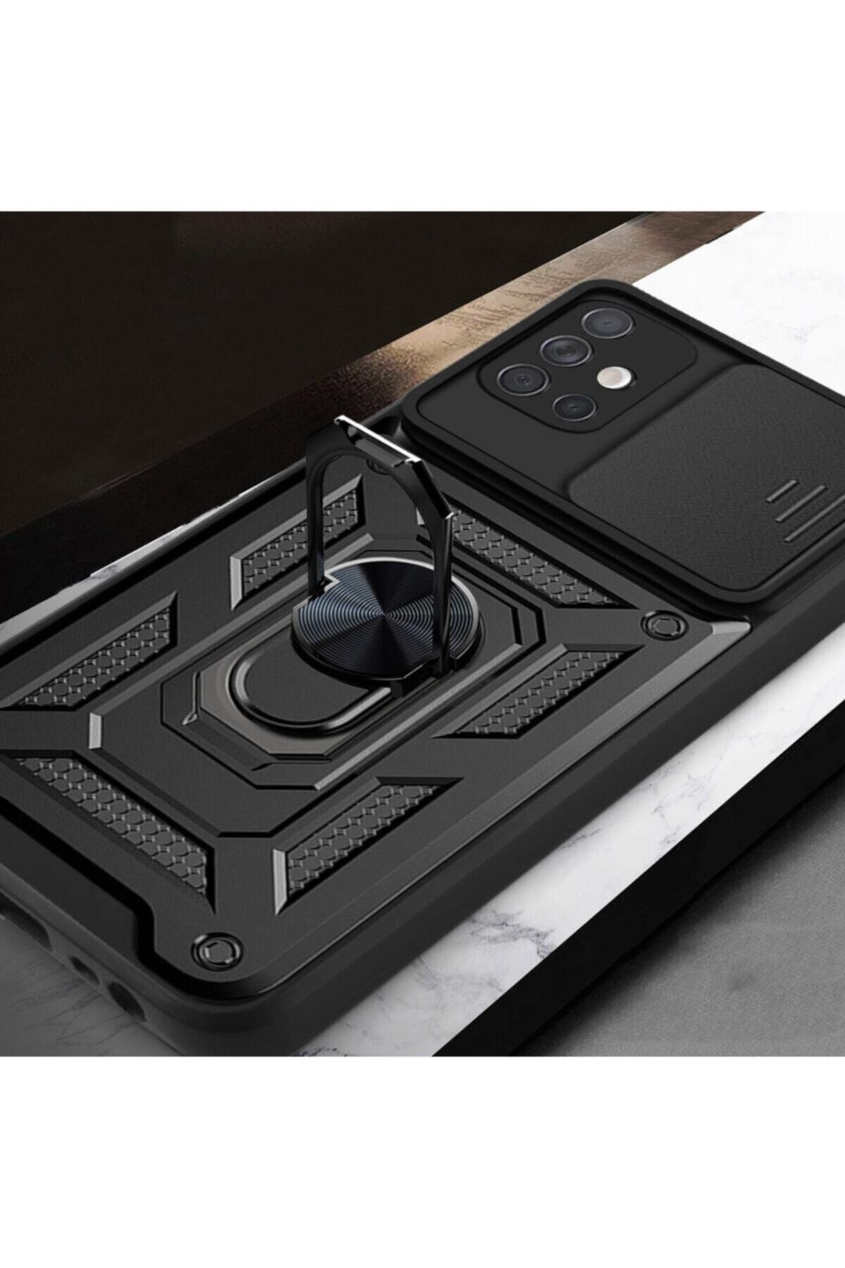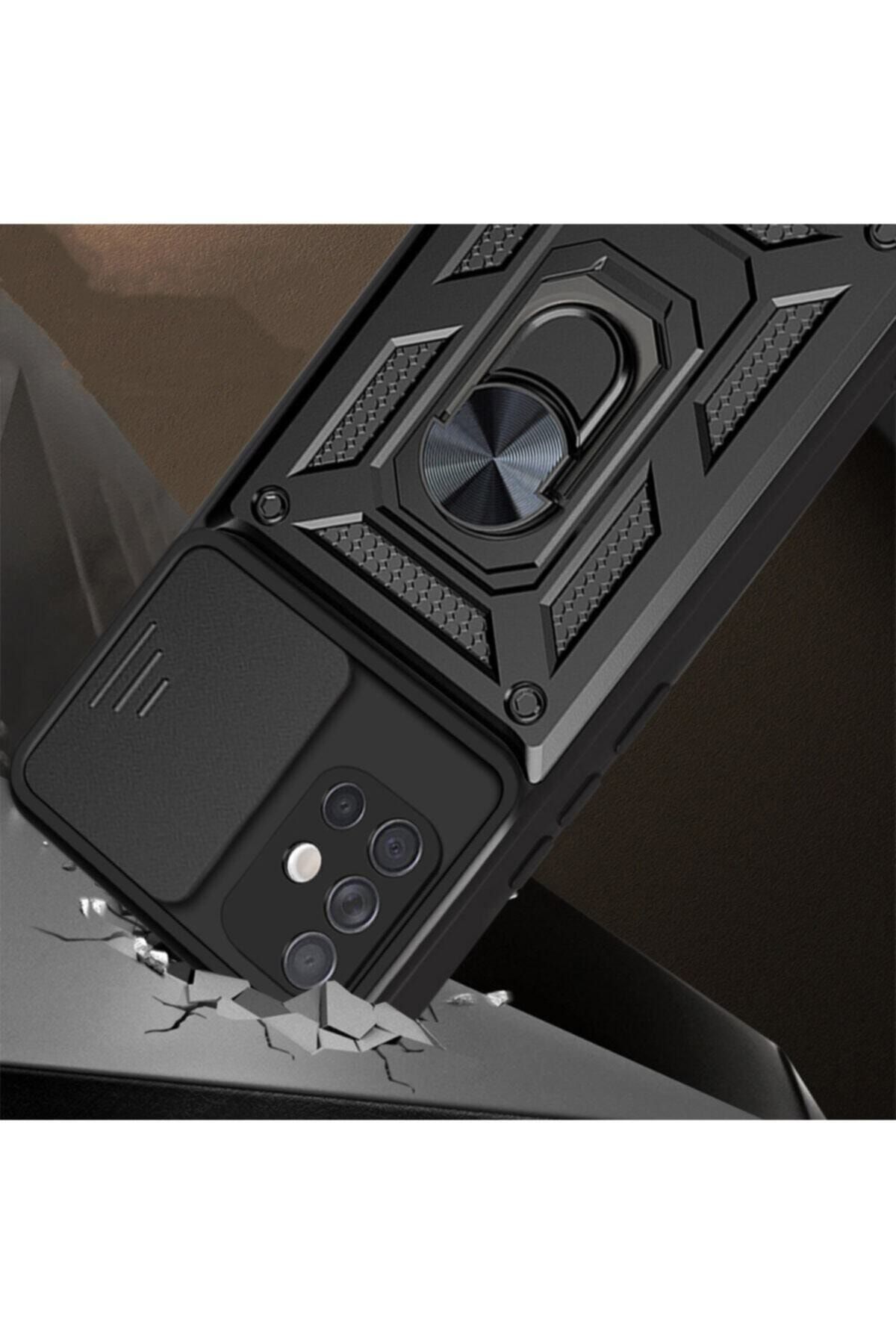 Fibaks Samsung Galaxy A51 Uyumlu Kılıf Kamera Korumalı Sürgülü Yüzüklü Armor Military Tank Zırh