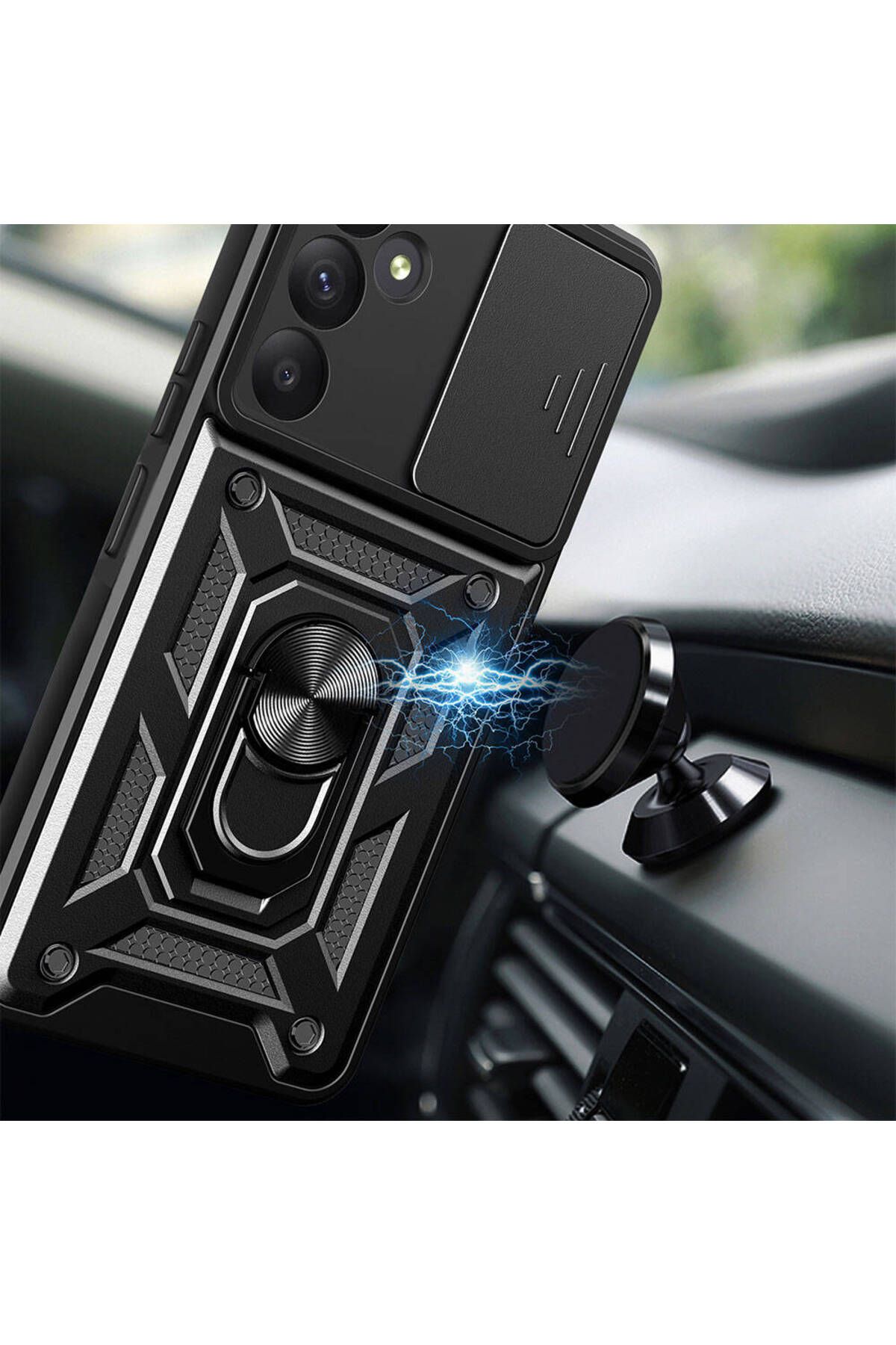 Fibaks Samsung Galaxy A55 Kılıf Kamera Korumalı Sürgülü Yüzüklü Armor Tank Kapak (Uyumlu)