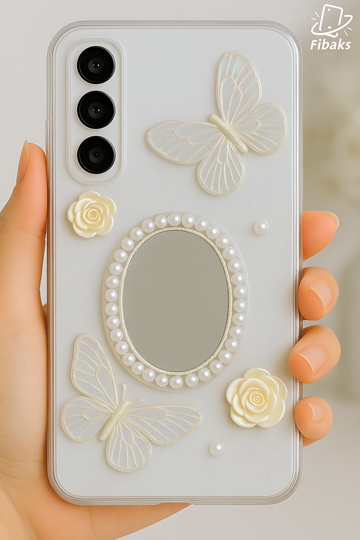 Fibaks Samsung Galaxy A56 Kılıf 3D Kelebek Gül Desenli Aynalı Simli Şeffaf Tasarımlı Silikon Kapak ürününü en uygun fiyata kozmetikara.com sitemizden sipariş verebilirsiniz.