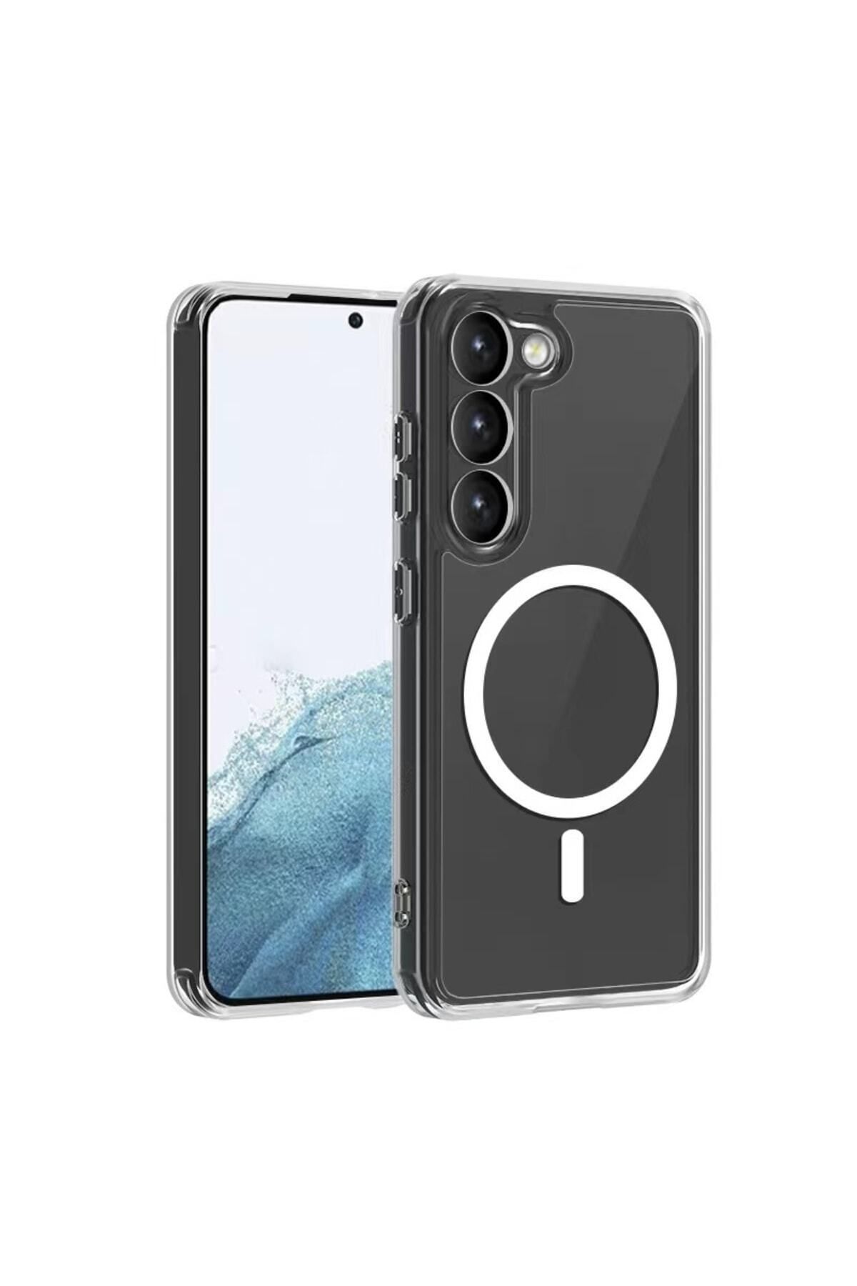 Fibaks Samsung Galaxy S23 Kamera Çıkıntılı Magsafe Wireless Şarj Sert Şeffaf Darbe Emici Kapak (Uyumlu)