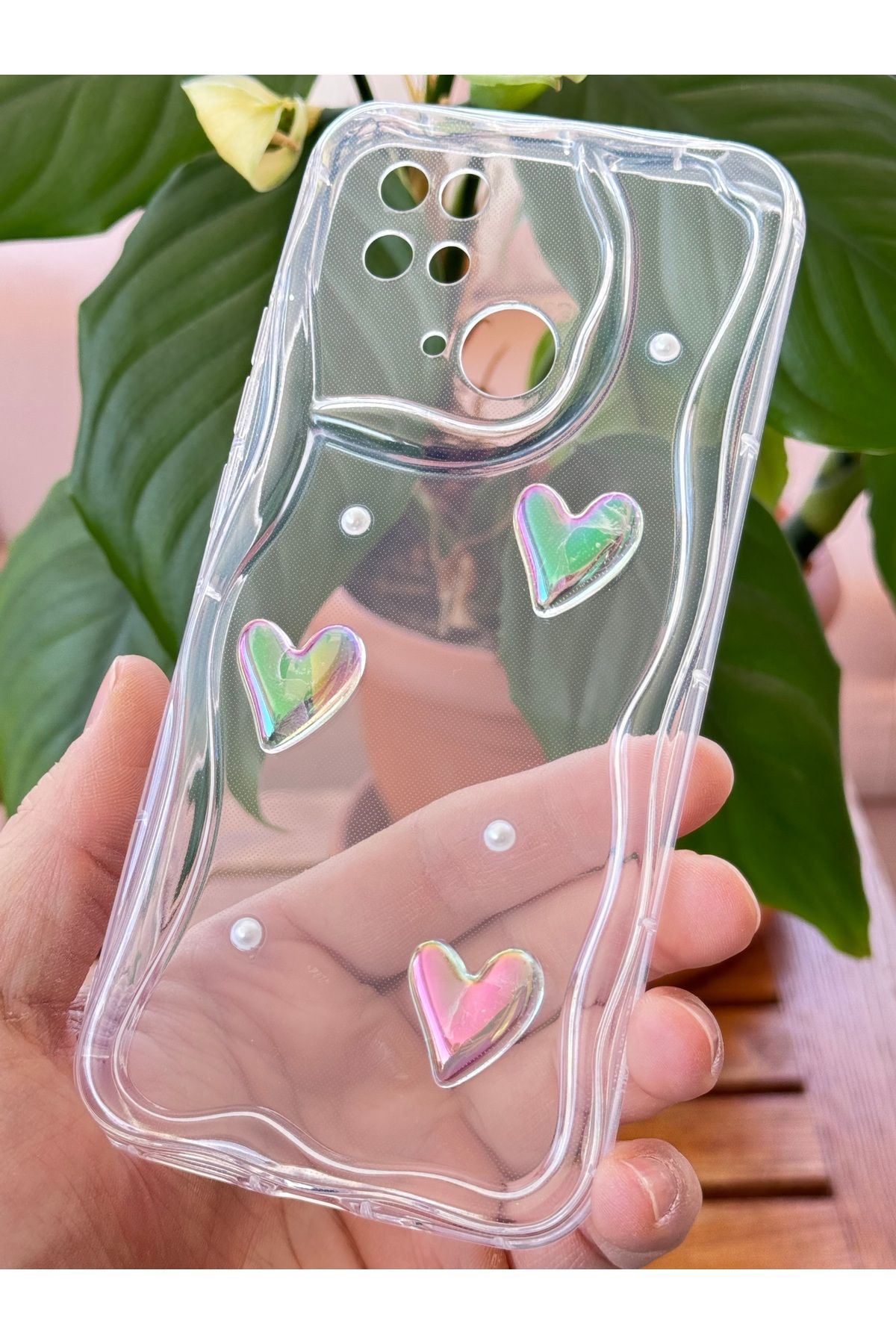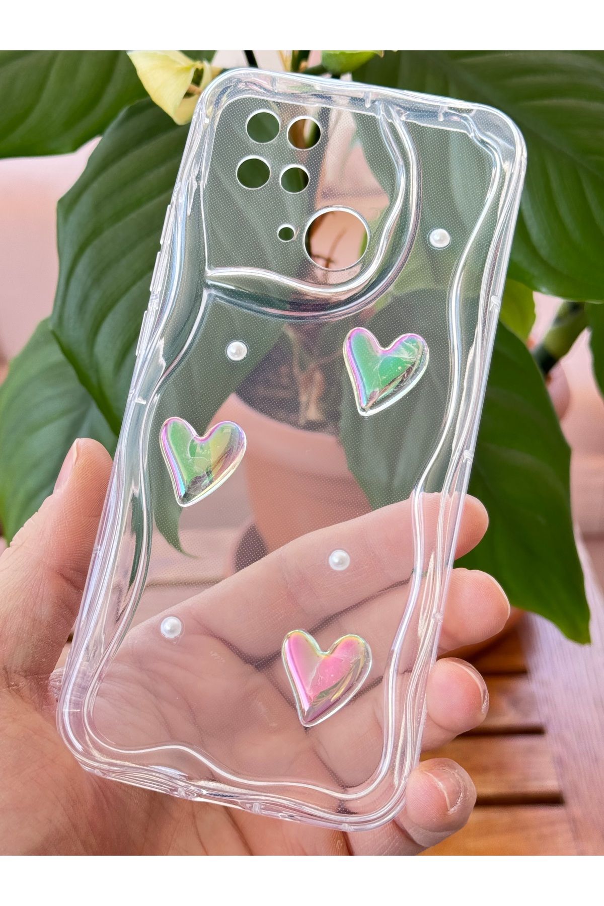 Fibaks Xiaomi Redmi 10C/Poco C40 Kılıf 3D Kalpli İnci Tasarımlı Desenli Kamera Korumalı Silikon Kapak
