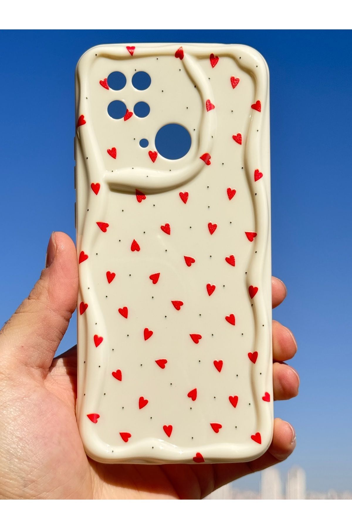 Fibaks Xiaomi Redmi 10C/Poco C40 Kılıf Kamera Korumalı Dalga Kenarlı Kırmızı Kalp Desenli Silikon Kapak ürününü en uygun fiyata kozmetikara.com sitemizden sipariş verebilirsiniz.