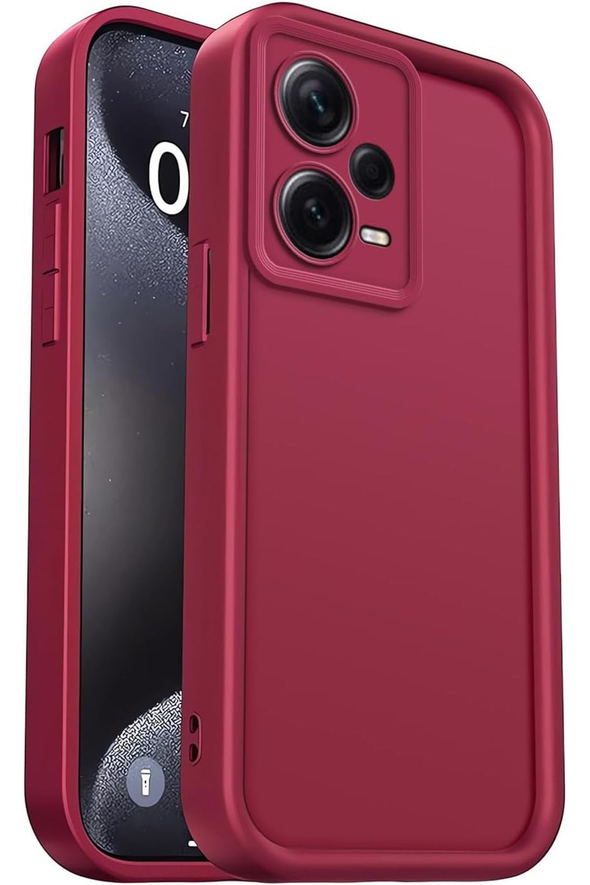 Fibaks Xiaomi Redmi Note 12 Pro 5G Kılıf Kamera Korumalı Yumuşak Dokulu Darbe Emici Bordo Silikon Kapak