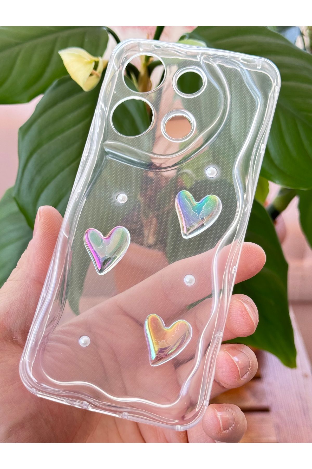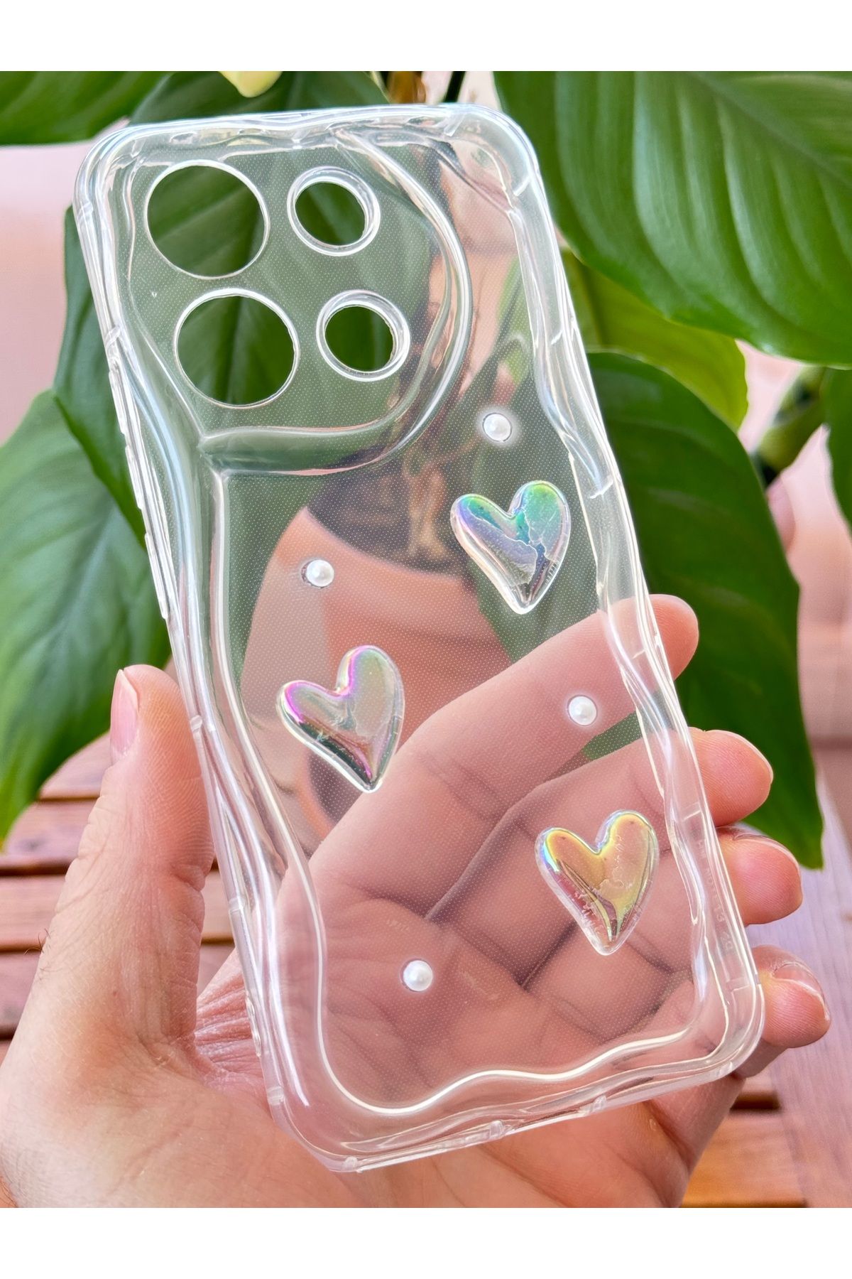 Fibaks Xiaomi Redmi Note 13 Pro 5G Kılıf 3D Kalpli İnci Tasarımlı Desenli Kamera Korumalı Silikon Kapak