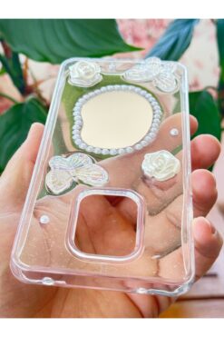 – Kelebek ve gül desenleriyle süslenmiş, göz alıcı ayna efekti sunan estetik görünüm.