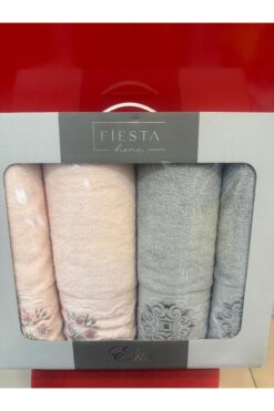 Fiesta 4LÜ SET HEDİYELİK ÇEYİZLİK GÜNLÜK PREMİUM KALİTE PAMUKLU BAŞ VE BANYO HAVLUSU HAMAM TAKIMI