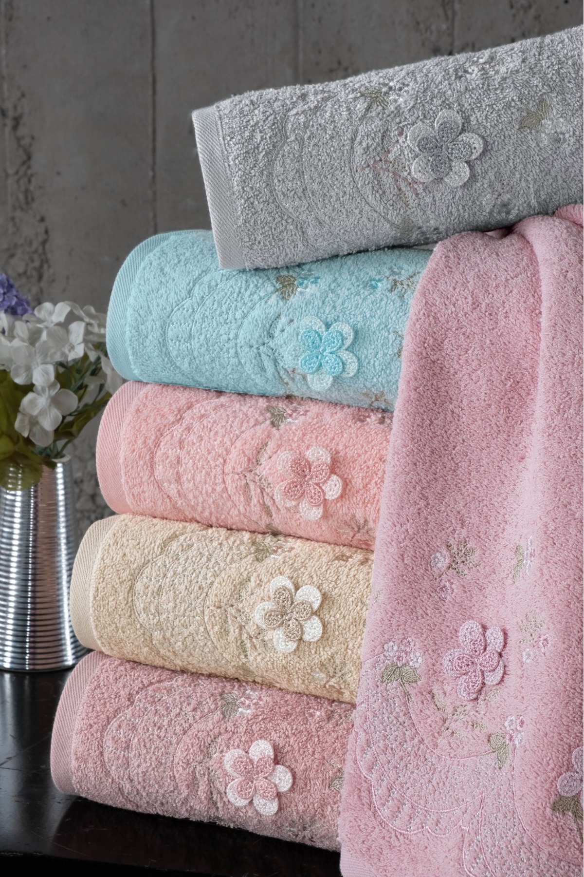 AYHANHOME Güpürlü Saten Işleme Desenli Kutulu Lüks Çeyizlik 50x90 6'lı El Yüz Havlu Seti