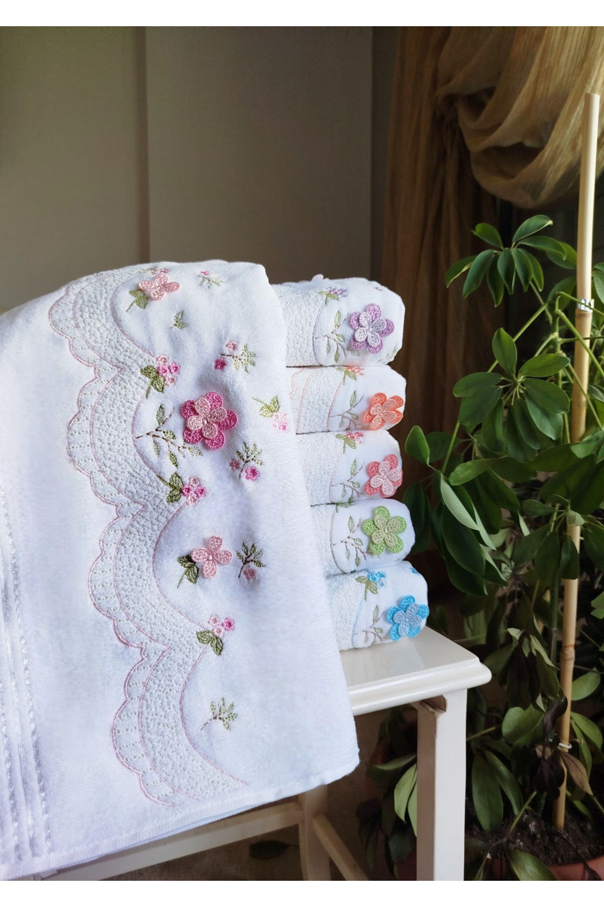 Fiesta Aybüke Beyaz Kadife 3D Nakışlı Kutulu 50×90 cm %100 pamuklu