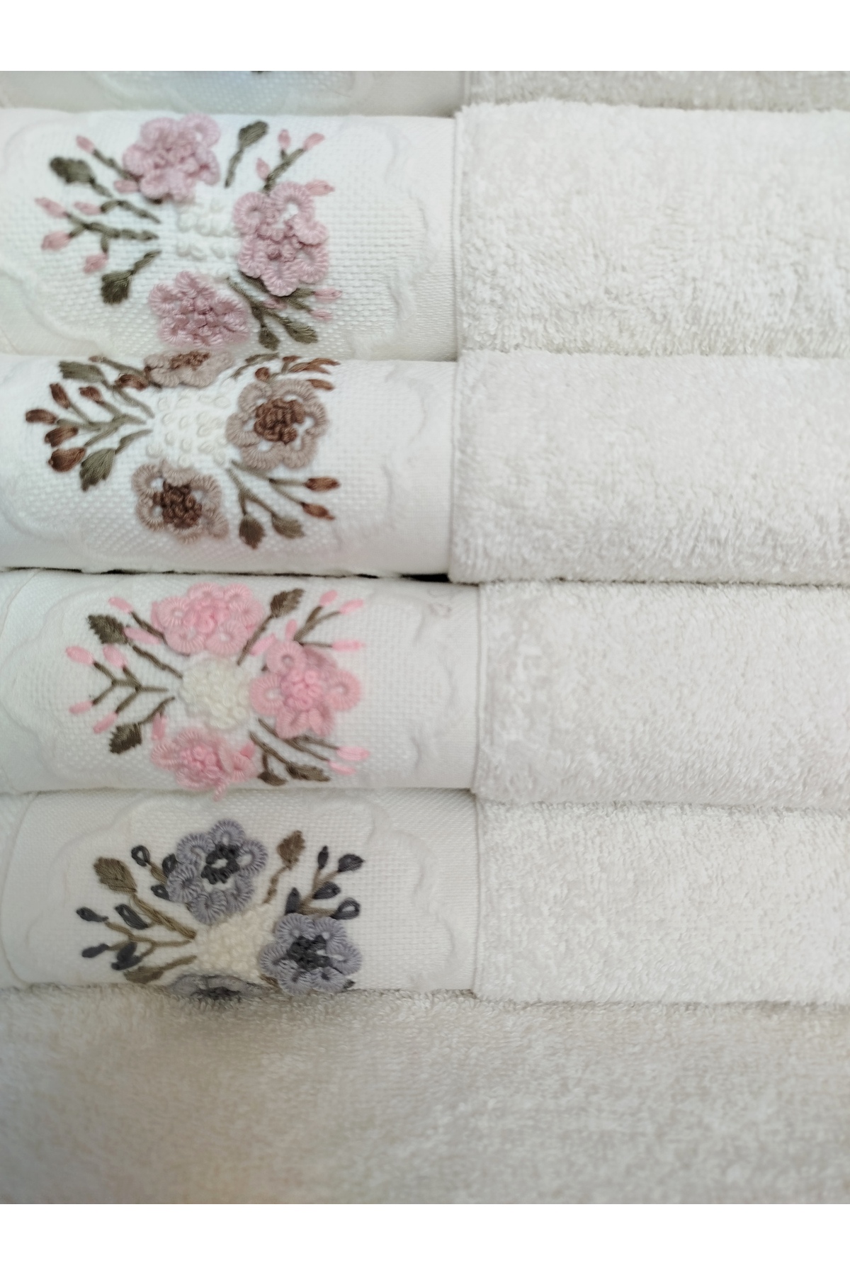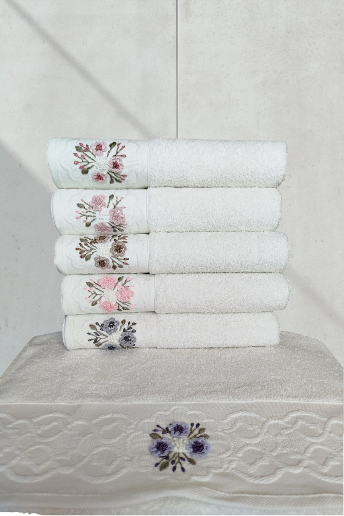 Fiesta Elite Krem El İşi 3D Nakışlı %100 Pamuk 6 Adet 50×90 cm El Yüz Havlusu KUTULU