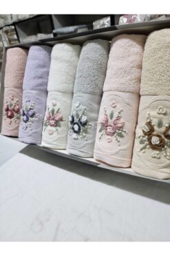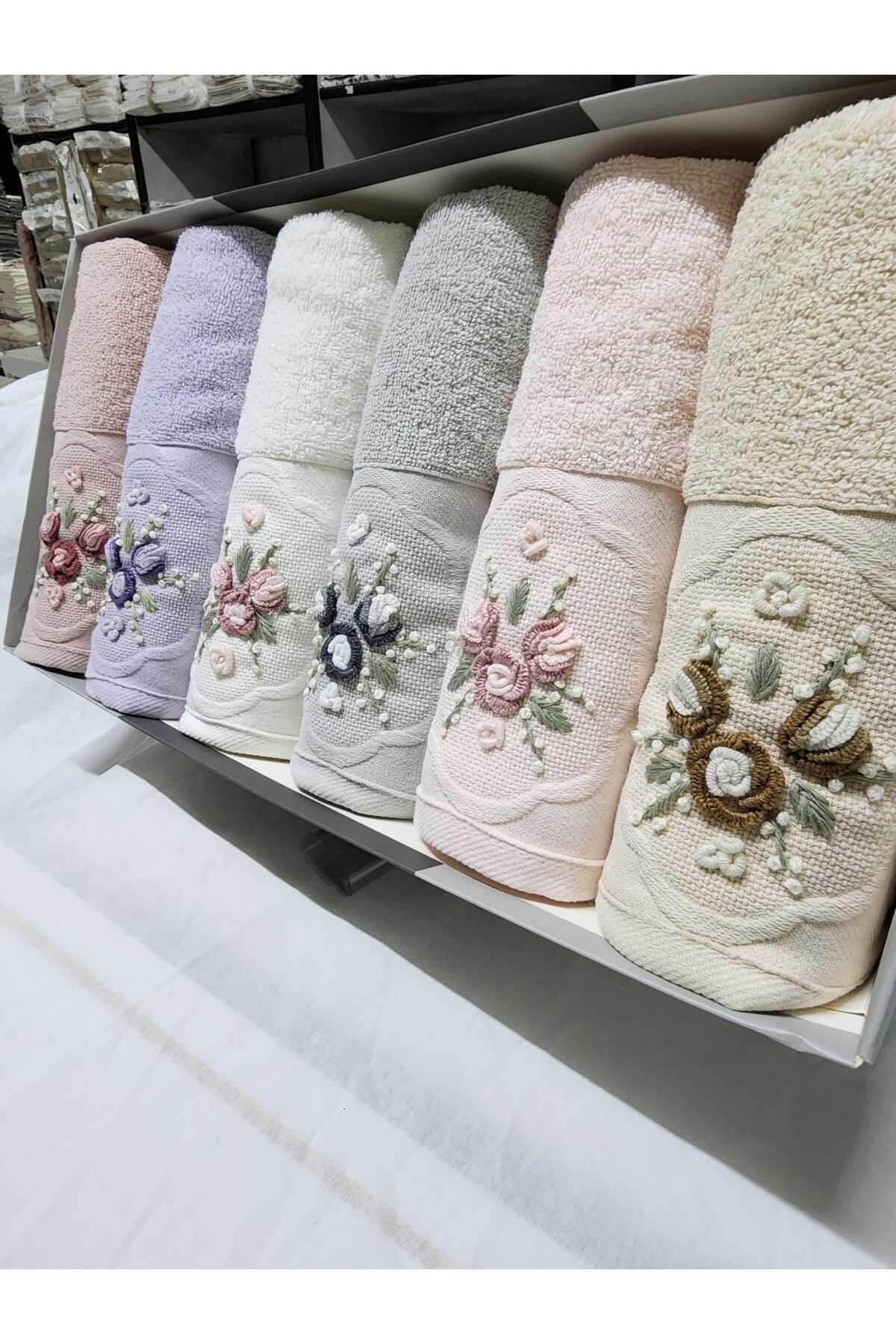 Fiesta Home Elite Bukle Jakarlı Nakışlı Pamuk Havlu 50×90 (6 Adet)