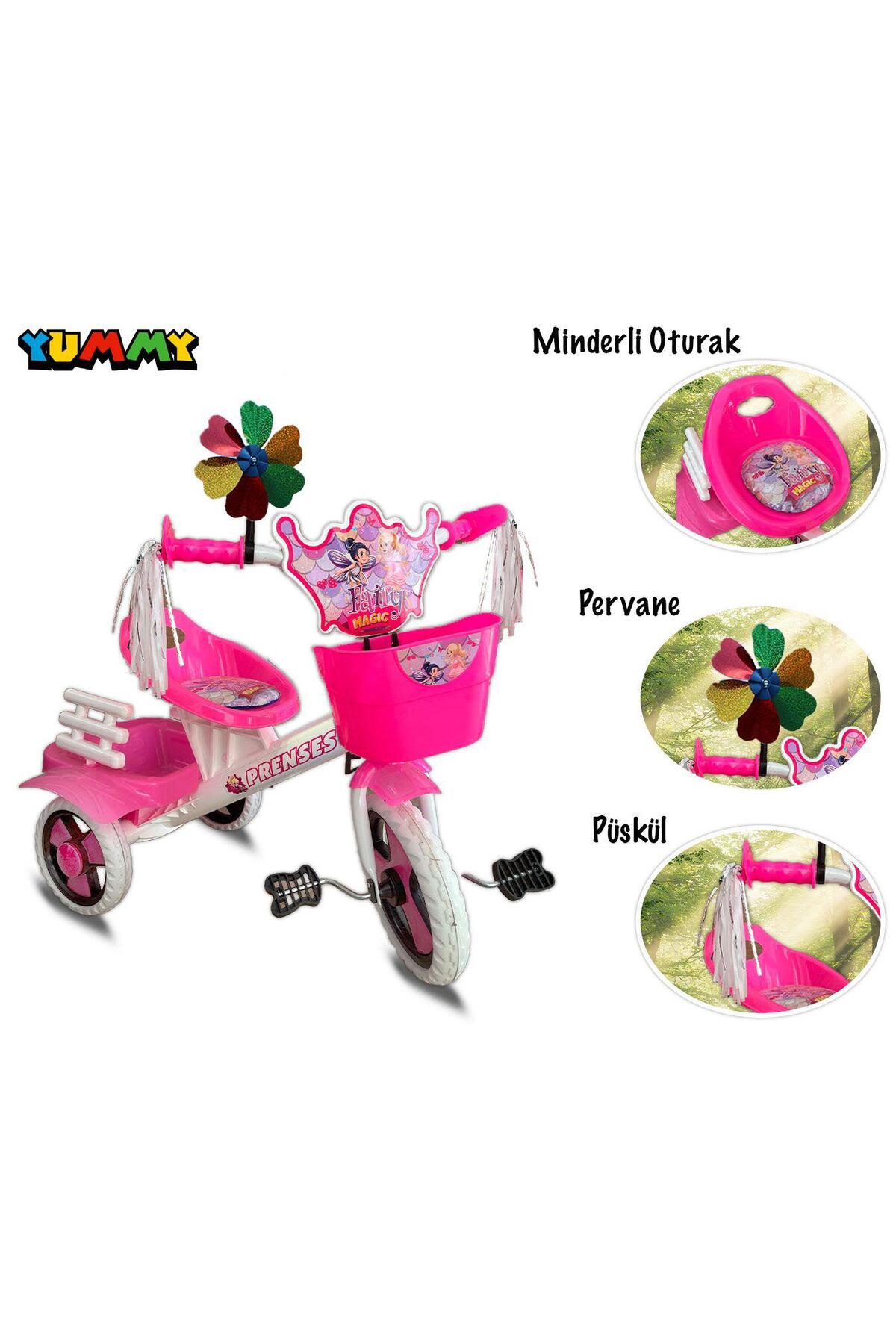 Fiesta Pembe 3 Tekerli YUMUŞAK MİNDERLİ PERVANELİ PÜSKÜLLÜ Çocuk Bisikleti 2026 Yeni Sezon