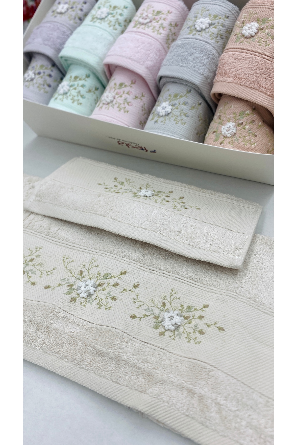 Coton Delux Pera 3'lü %100 Pamuk Havlu Seti | El, Yüz - Saç Havlusu | Çantalı, Çeyizlik, Hediyelik| 50x90 cm