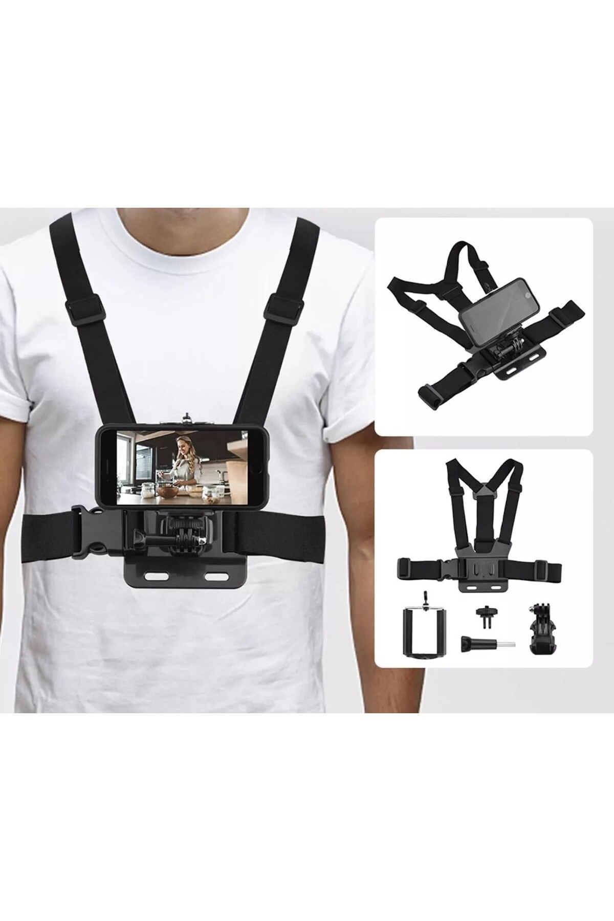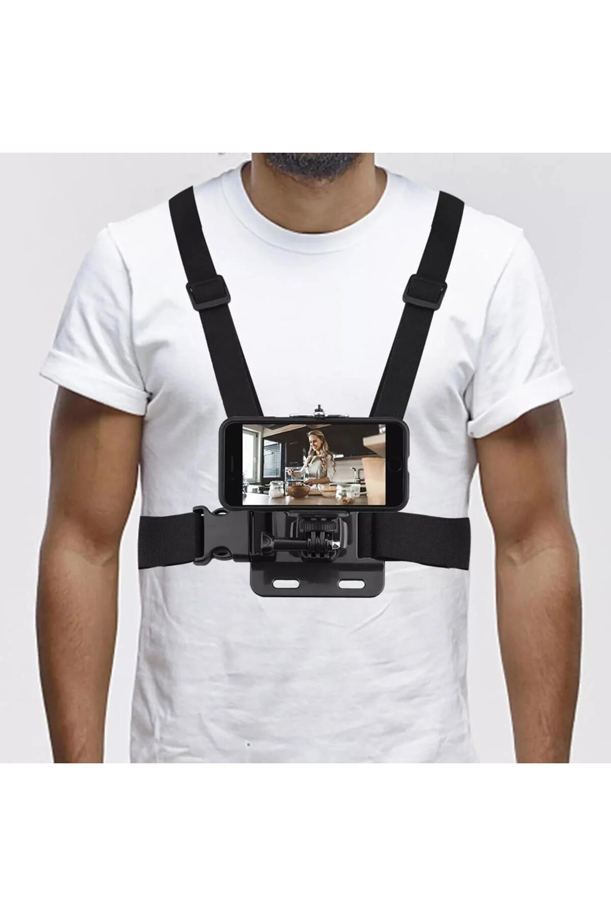 fimtech Cep Telefonu Uyumlu Göğüs Kemeri Vlog Video Çekim Seti Phone Holder Chest Body Strap