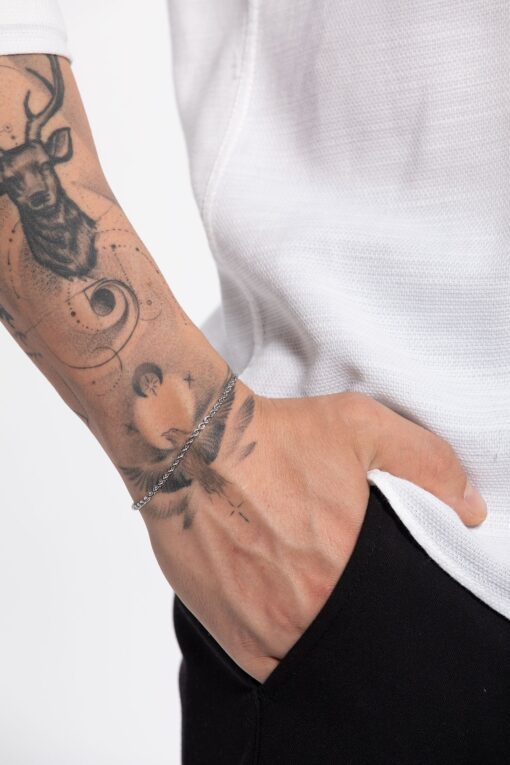 Fjellor Marion Erkek Gümüş Renk Paslanmaz Ince Burgu Çelik Bileklik
