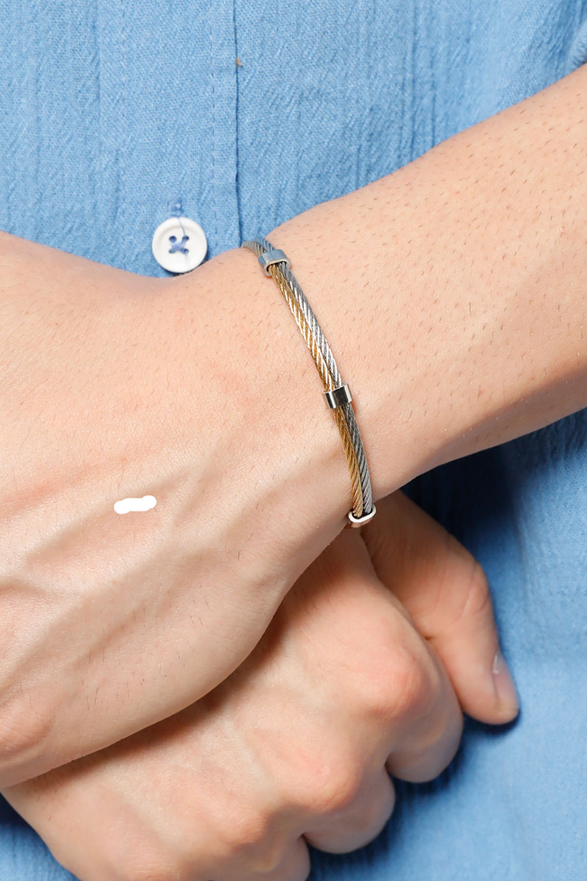 Fjellor Merimac Erkek Gümüş- Altın Renkli Paslanmaz Çelik Kelepçe Bileklik