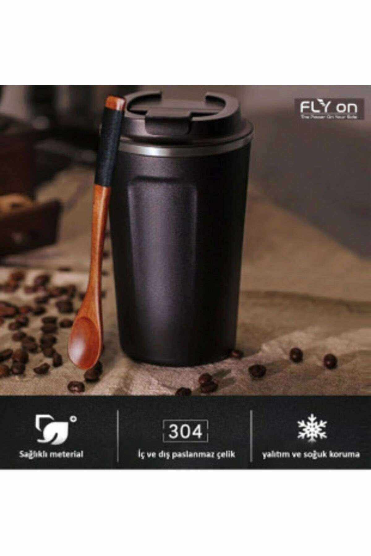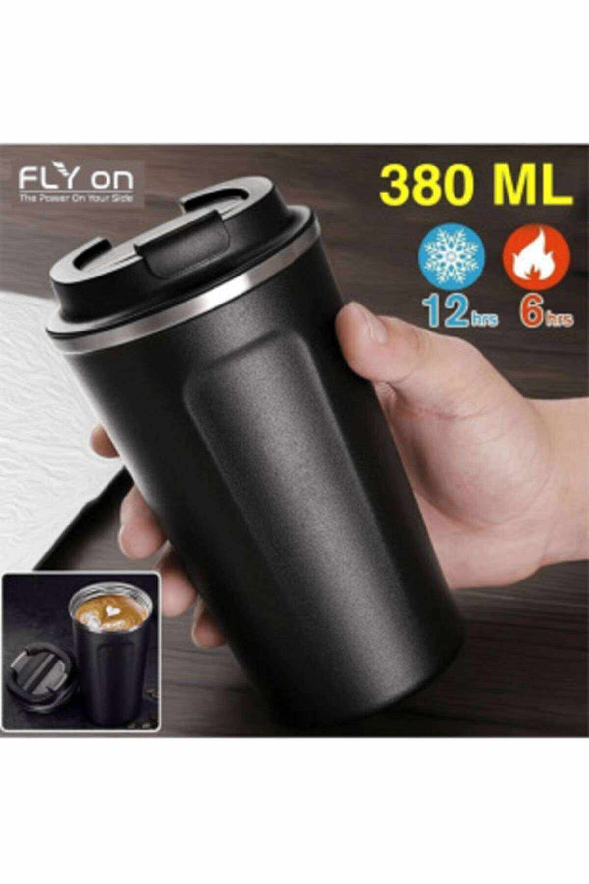 FLYON Çift Katman El Yakmaz 380 Ml Ergonomik Çelik Sızdırmaz Kupa Sıcak Soğuk Özellikli Termos