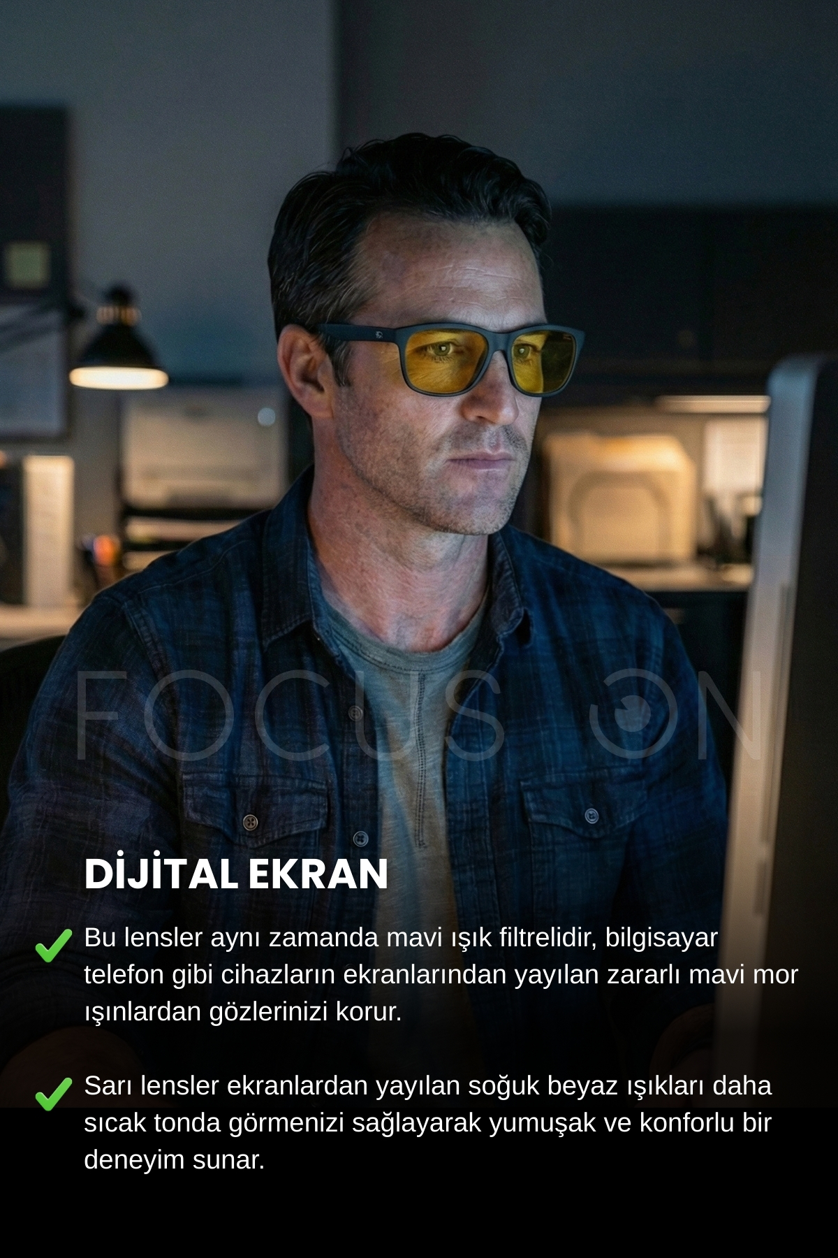 Focus On Antifar Fotokromik 3in1 Gözlük | Gece Sürüş | Ekran | Güneş | TS012