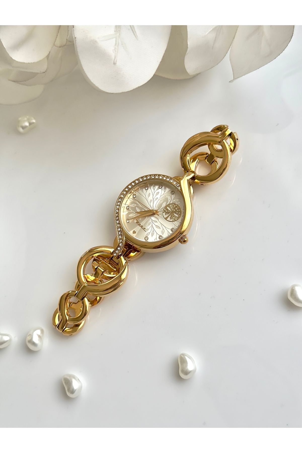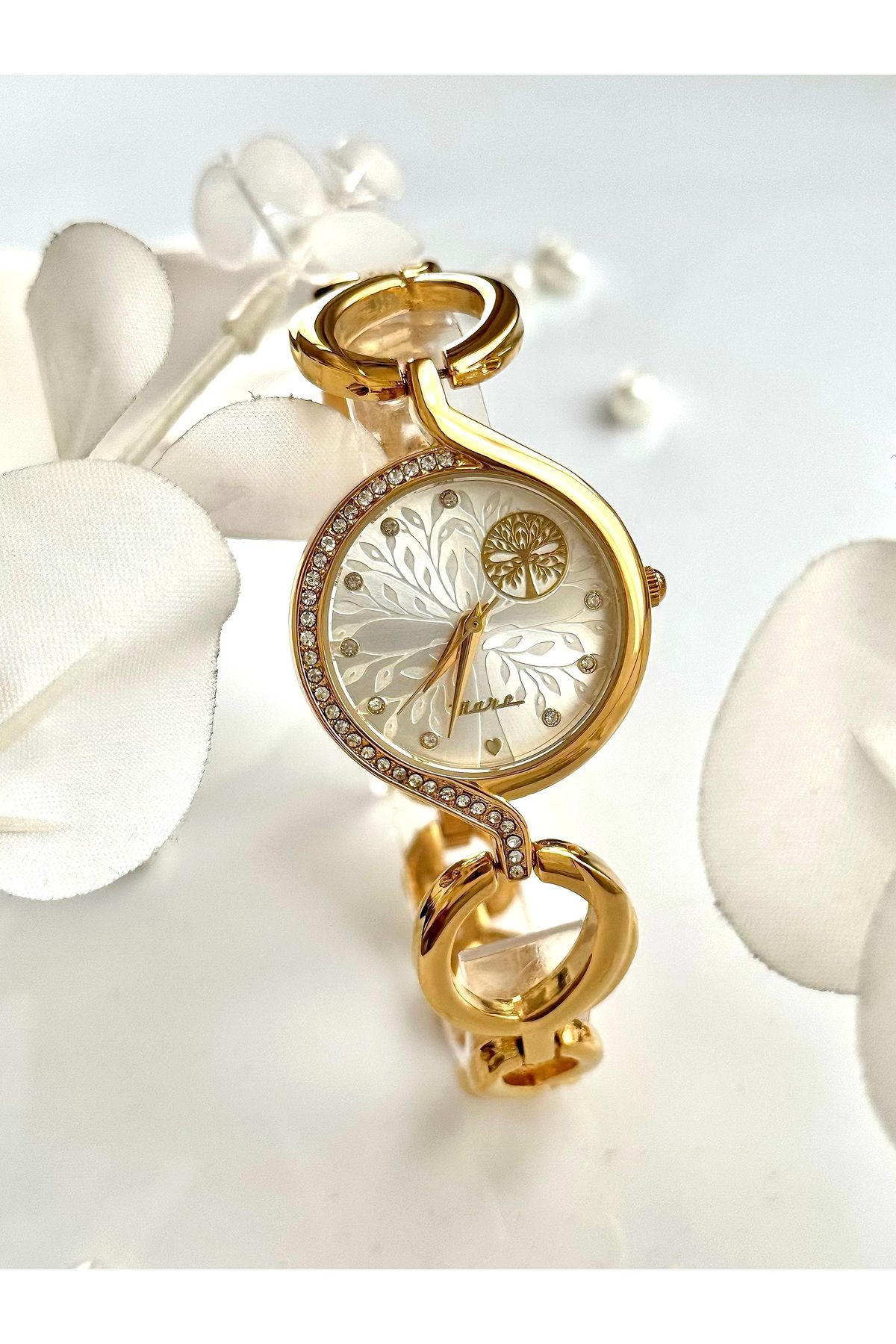 Forsining -TLAZE-(ALTIN RENK)altın kaplama halka kordon kadın kol saati-
