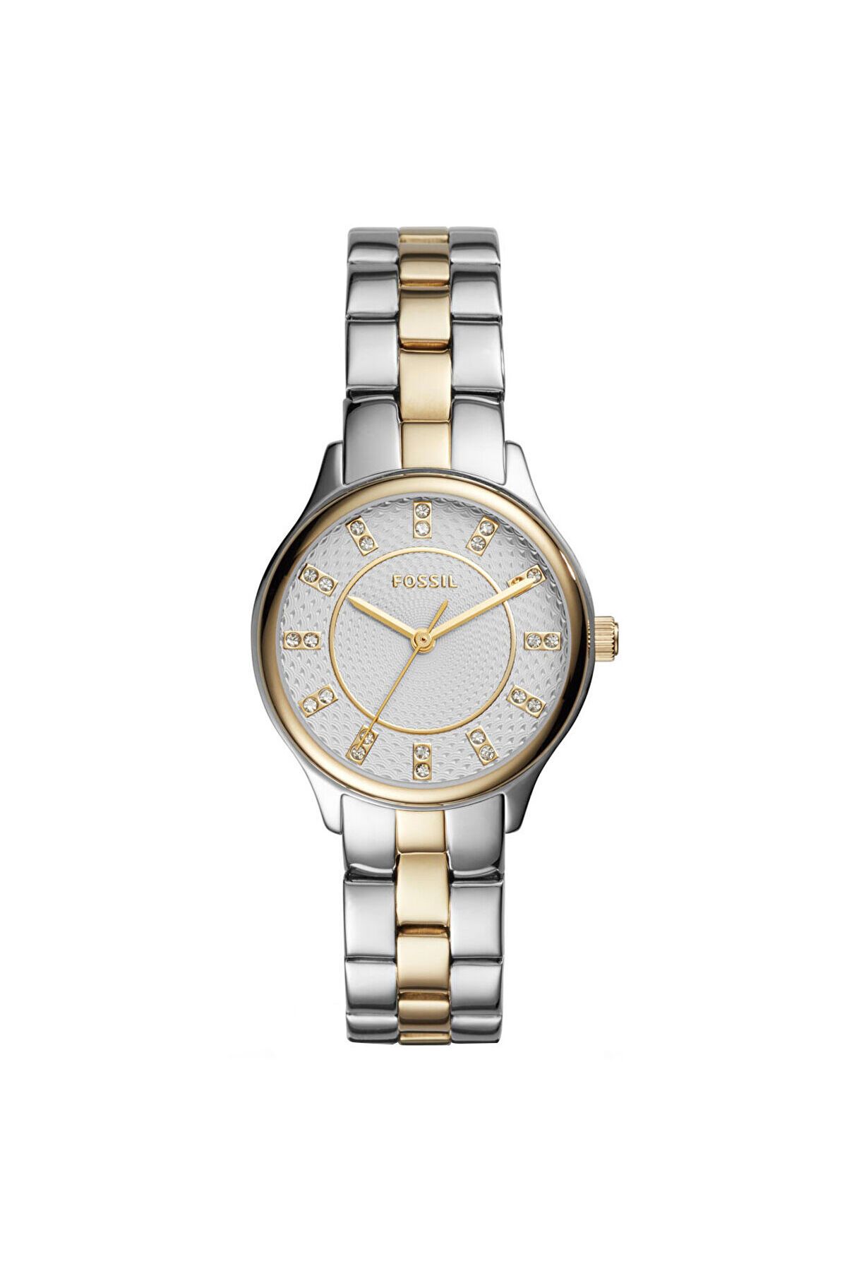 CaseThickness:10 mm CaseDiameter:30 mm WaterProof:5 ATM StrapLanyardColor:Altın Rengi/Metalik Gri DialType:Analog DialColor:Beyaz KasaMateryali:Çelik StrapLanyardProperty:Çelik BrandName:Fossil Yaş Grubu:Kadın Gender:Kadın CategoryName:Kadın Klasik Saat Style:Klasik Saatler CaseColor:Metalik Gri GlassProperty:Mineral Technology:Quartz KadranTasi:Var Calendar:Yok Kronometre:Yok CaseStone:Yok Alarm:Yok DialStone:Yok CaseShape:Yuvarlak