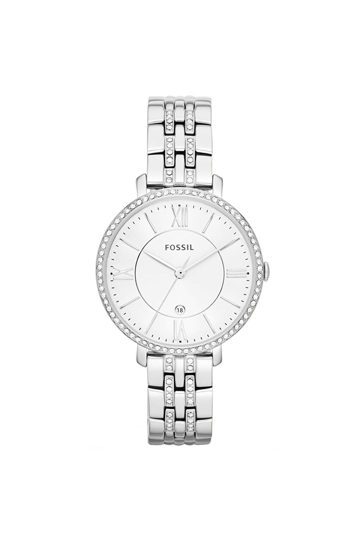 WaterProof:3 ATM CaseDiameter:36 mm CaseThickness:8 mm Style:Abiye Saatler DialType:Analog DialColor:Beyaz KasaMateryali:Çelik StrapLanyardProperty:Çelik BrandName:Fossil Gender:Kadın Yaş Grubu:Kadın CategoryName:Kadın Abiye Saat CaseColor:Metalik Gri StrapLanyardColor:Metalik Gri GlassProperty:Mineral Technology:Quartz Calendar:Var CaseStone:Var DialStone:Var Kronometre:Yok KadranTasi:Yok Alarm:Yok CaseShape:Yuvarlak