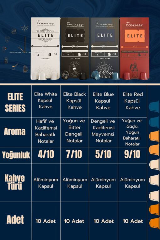 FRANCES Elite Kapsül Kahve Tanışma Paketi 40'lı ( Nespresso Uyumlu Alüminyum Kapsül Kahve ) ürünü ucuz fiyat, hızlı kargo ve kredi kartına 12 ay taksit imkanı ile hemen sitemizden sipariş verin.