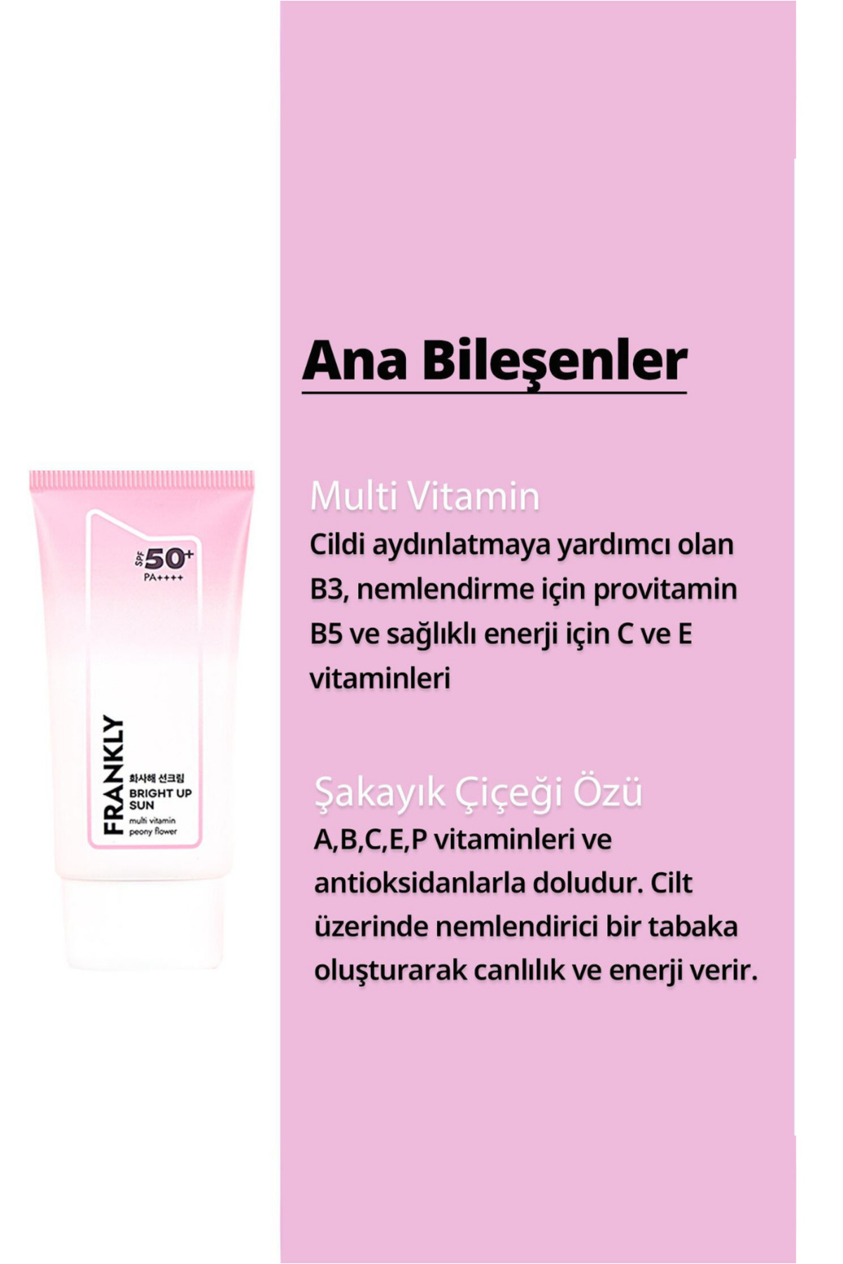 FRANKLY Bright Up Ton Eşitleyici ve Aydınlatıcı Mineral Güneş Kremi SPF50+ PA++++ 50 mL