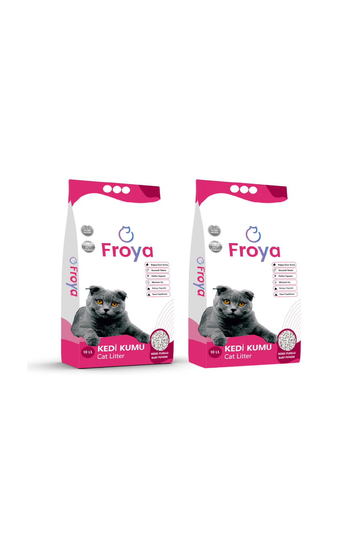 FROYA High Quality & Happy Pets Bebek Pudralı Topaklanan Bentonit Kedi Kumu 10L x 2