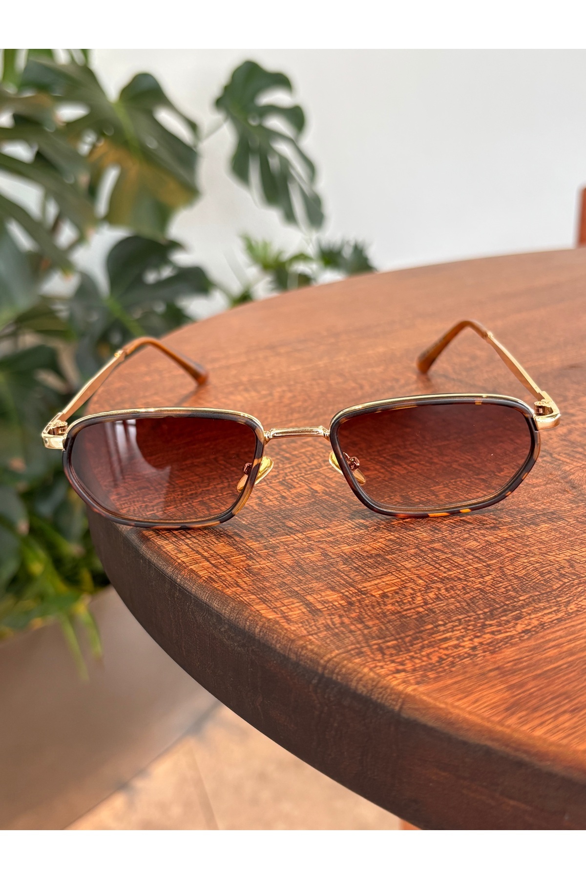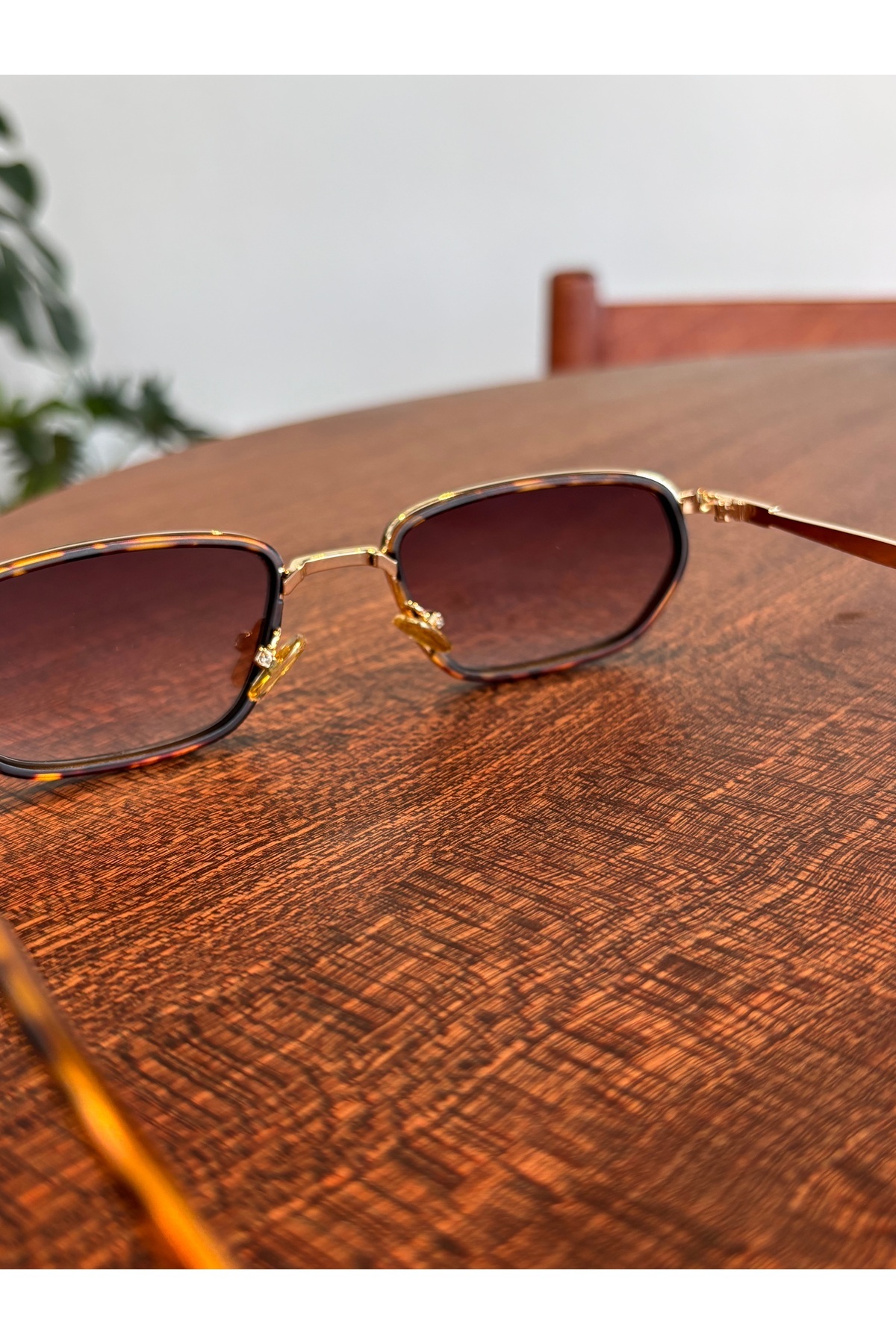 funeyes Clara Retro Leopar desenli Kahverengi metal Gold Güneş Gözlüğü