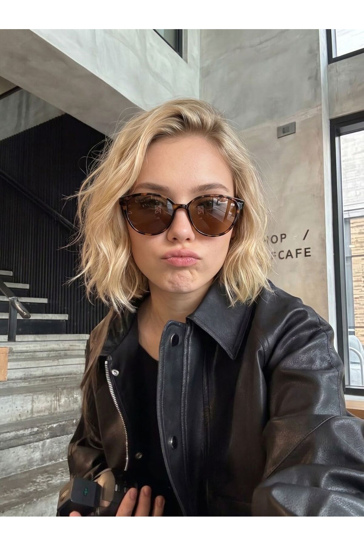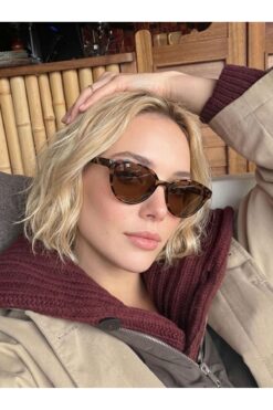 funeyes Cunda Leopar Desenli Kahverengi Güneş Gözlüğü Metal Menteşeli ürün
