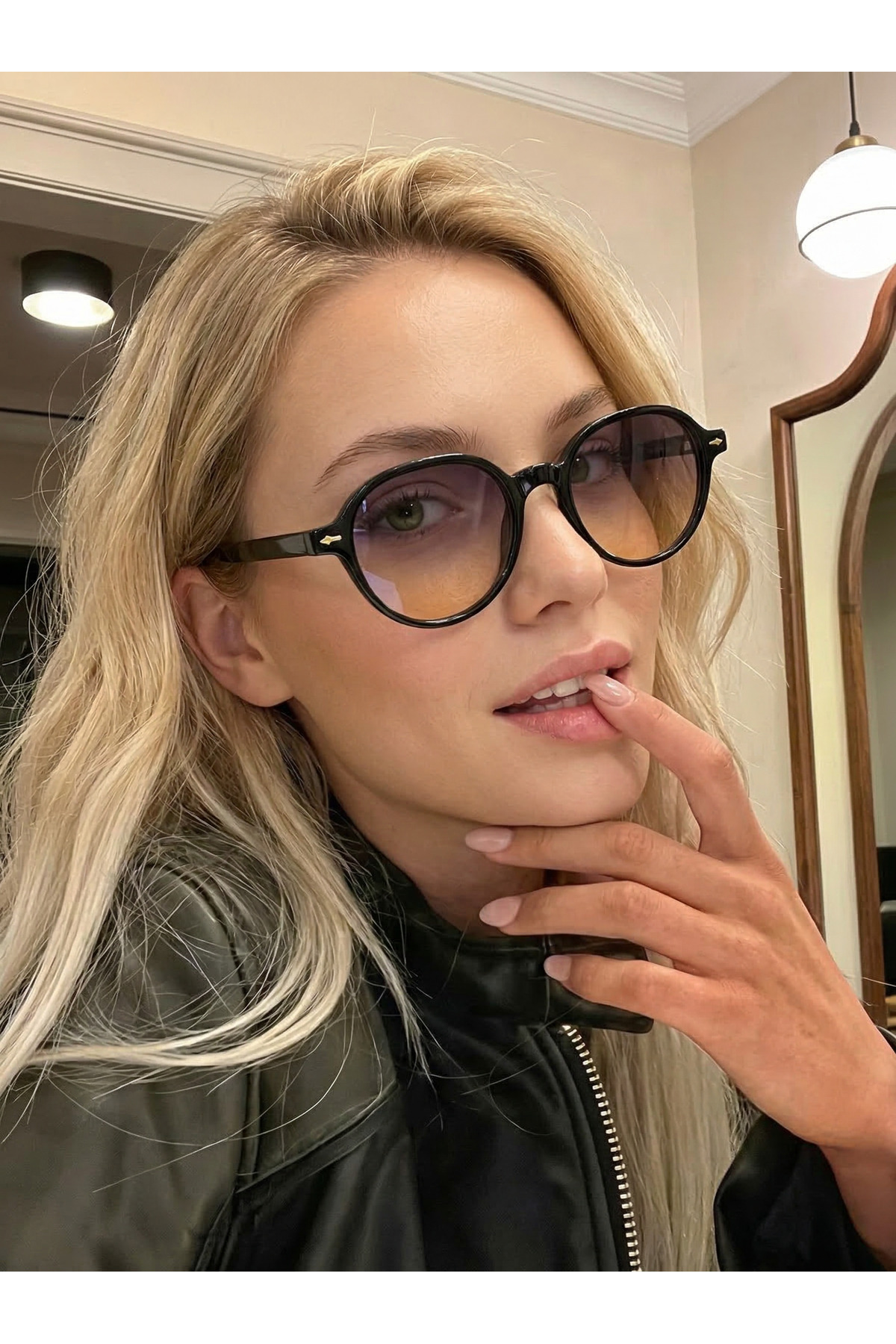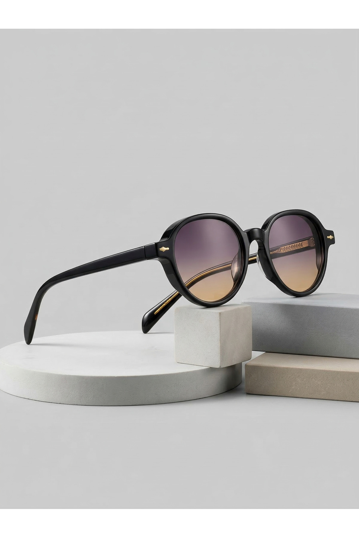 funeyes Larg Siyah Çerçeve Degrade Unisex Yuvarlak Güneş Gözlüğü | Hafif ve Konforlu | UV400 %100 Koruma
