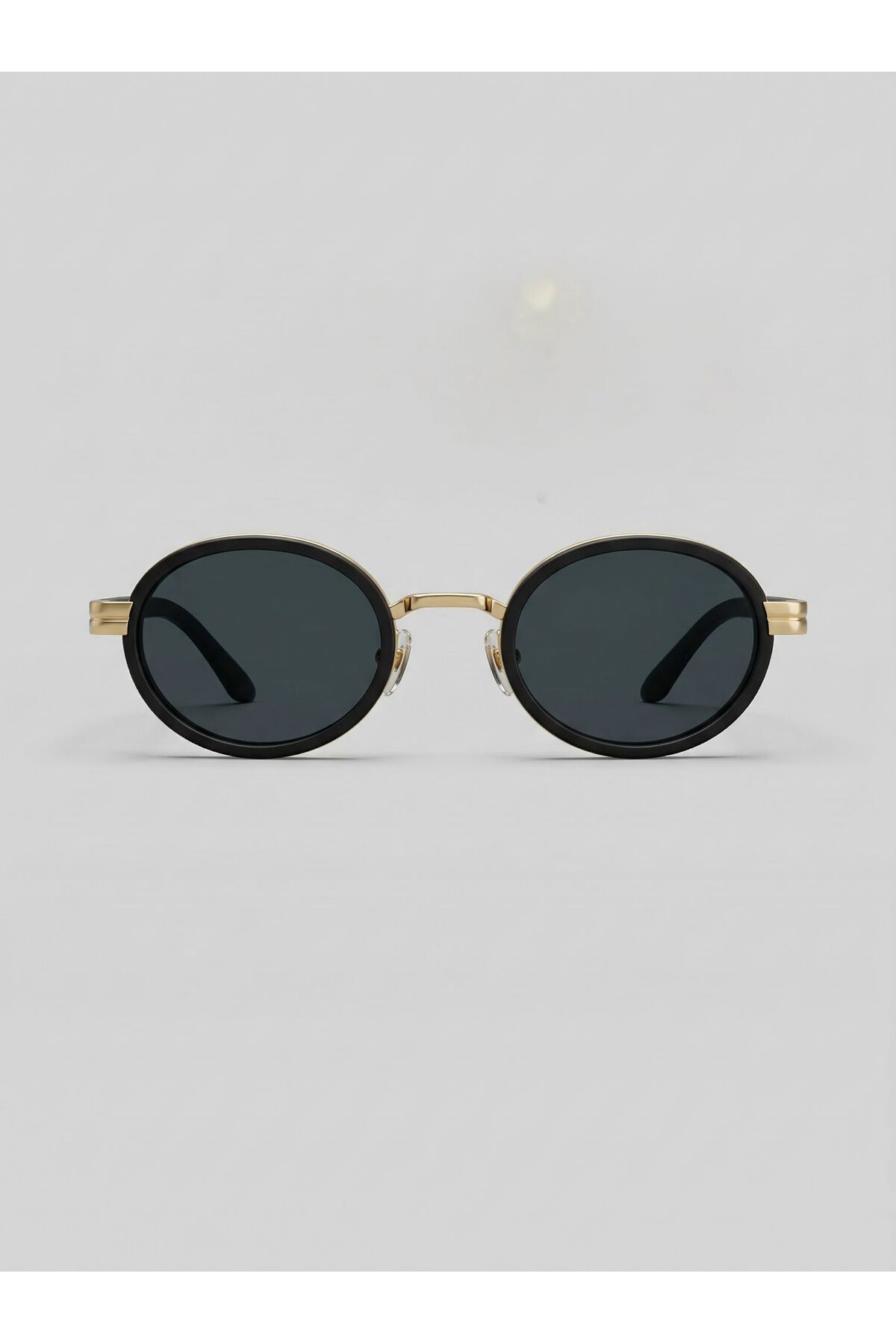 funeyes Max Siyah Gold Oval Metal Elips Küçük Yüzler için Güneş Gözlüğü Premium Seri
