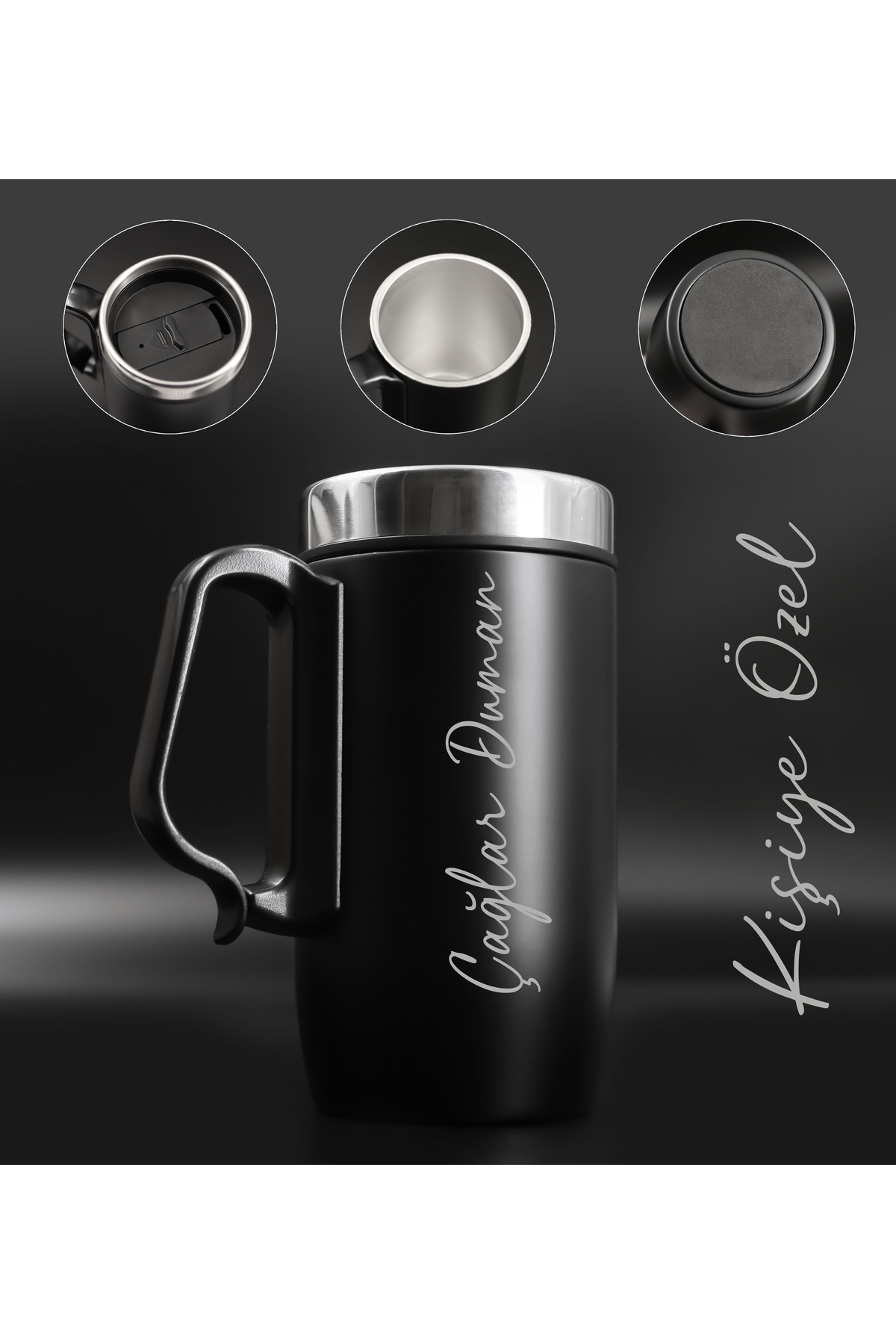 gagga GAGGAGIFT Kişiye Özel Mat Siyah Paslanmaz Çelik Termos Bardak Çay Kahve(DİK KULLANIM)