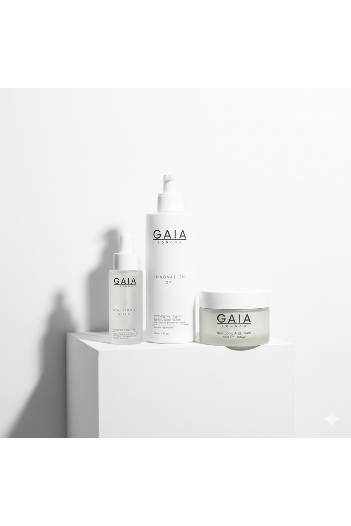 Gaia London NEMLENDİRİCİ BAKIM SETİ ( Hyaluronıc Acid) 3 lü Set(Hyaluronıc Krem-Hyaluronıc Serum-Innavatıon Jel)