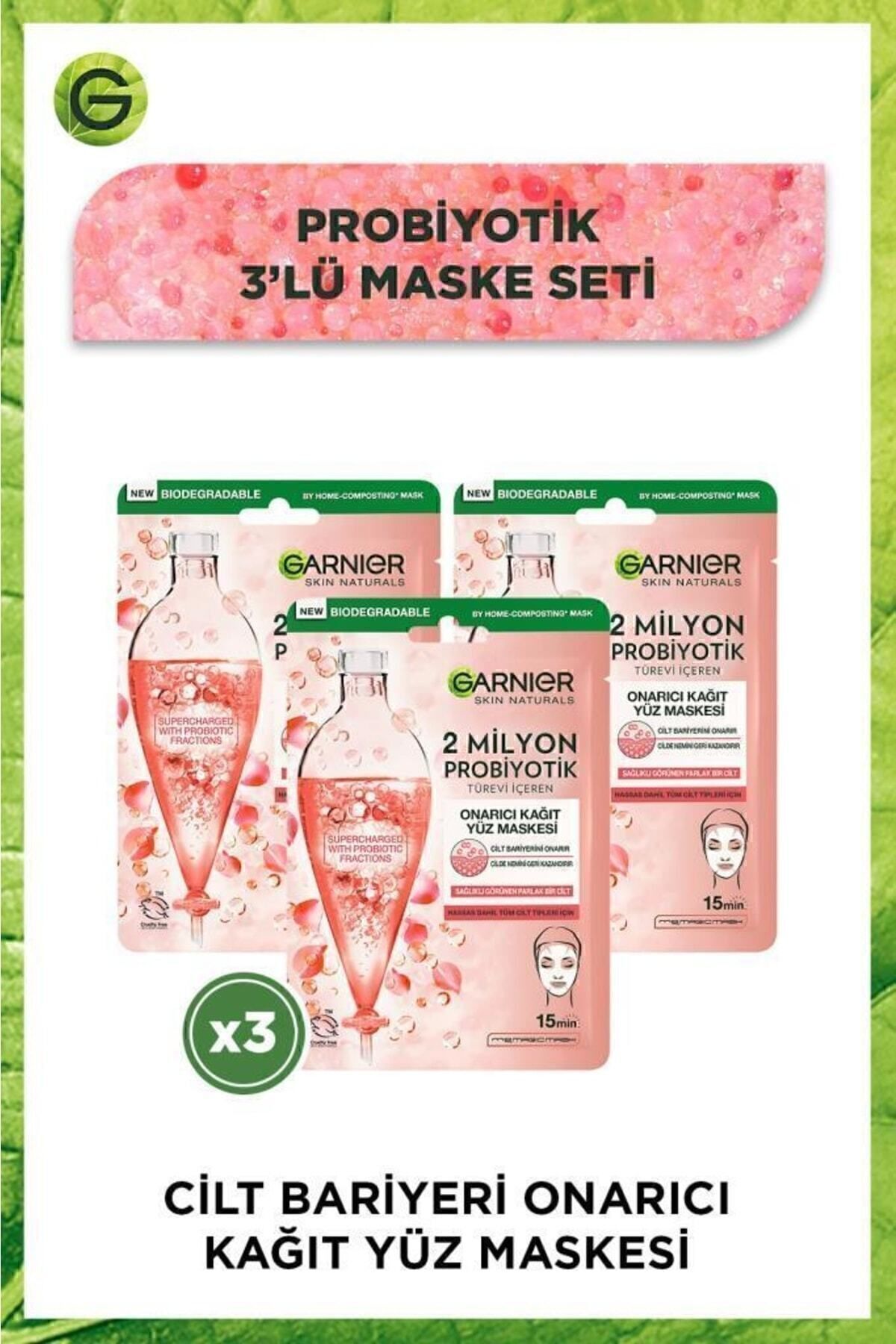 Garnier 2 Milyon Probiyotik Onarıcı Kağıt Yüz Maskesi 22 gr X 3 Adet