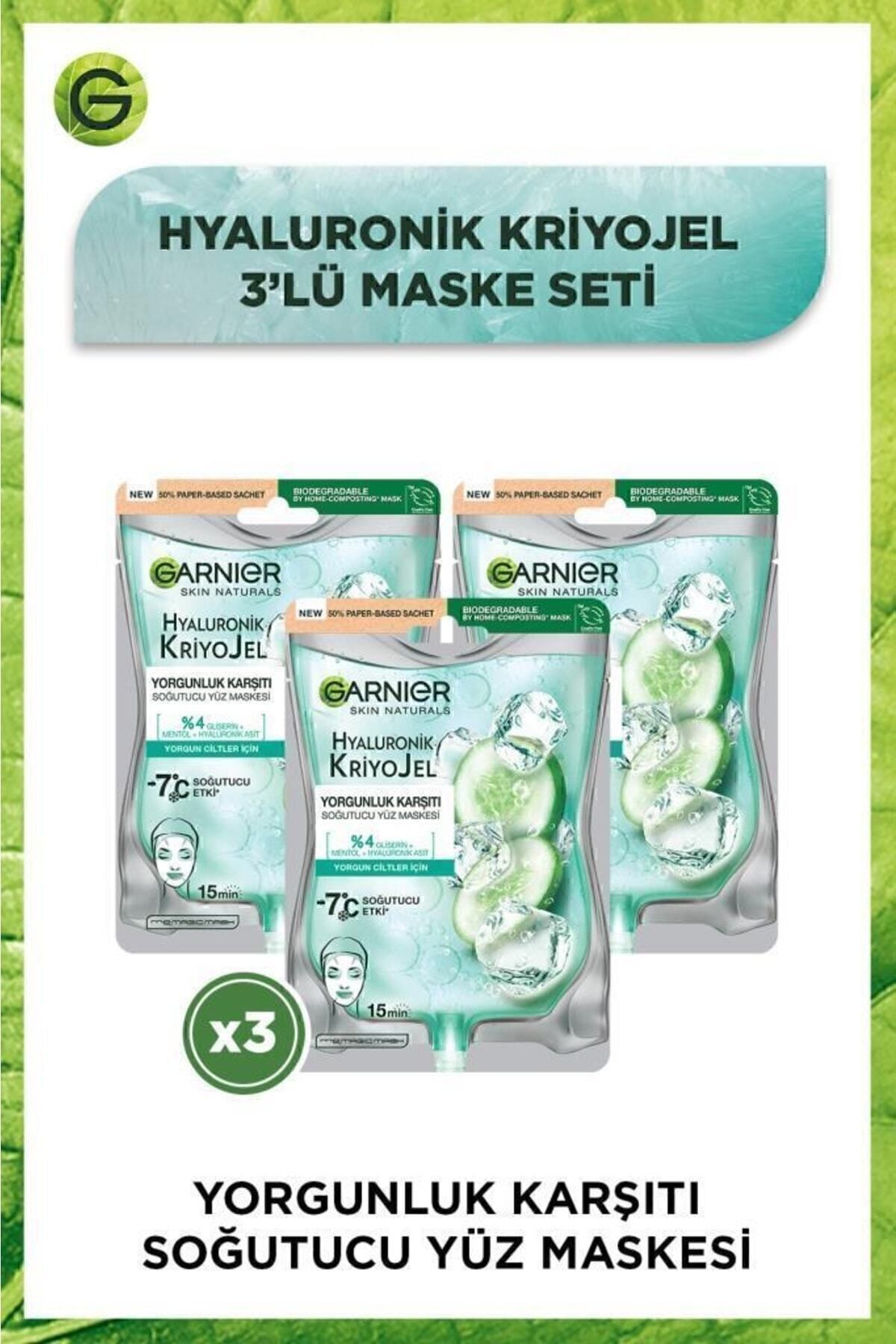 Garnier Hyaluronik Kriyojel Yorgunluk Karşıtı Soğutucu Yüz Maskesi 3’lü Set