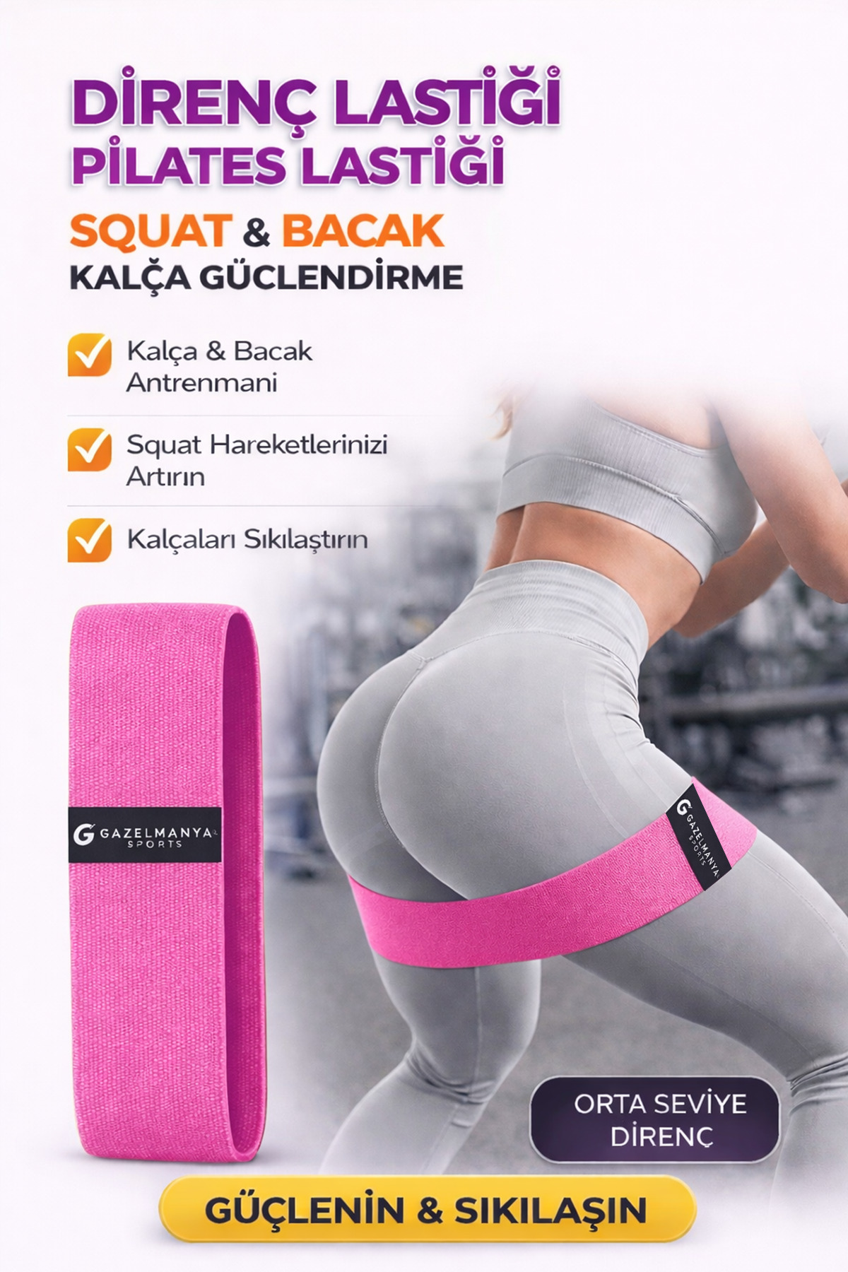 GAZELMANYA Pilates Lastiği Squad Bandı Orta Sert Squat Bant Fitness Kalça Egzersizi Direnç Bandı Loop Band