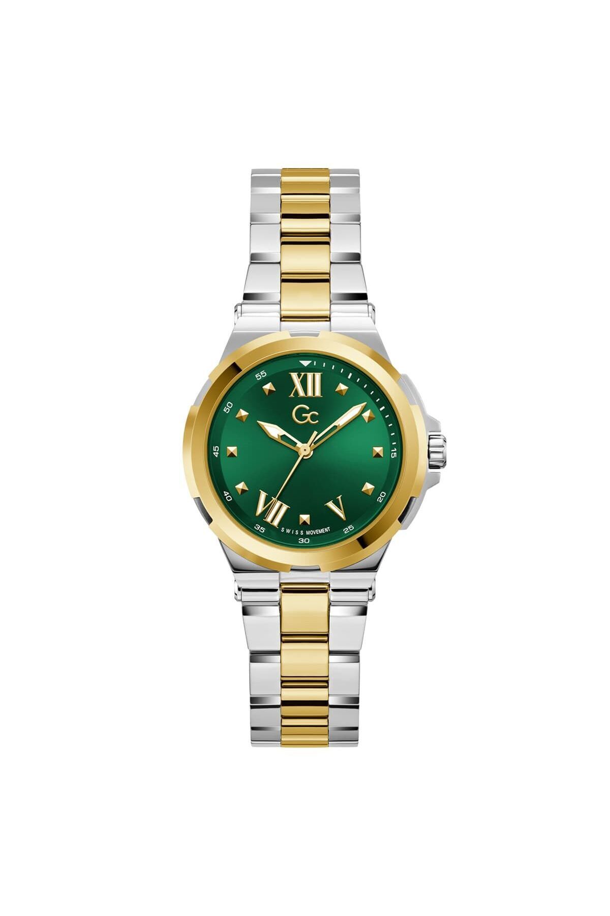 WaterProof:10 ATM CaseDiameter:34 mm StrapLanyardColor:Altın Rengi/Metalik Gri DialType:Analog StrapLanyardProperty:Çelik KasaMateryali:Çelik BrandName:Gc Kronometre:Hayır Yaş Grubu:Kadın Gender:Kadın CategoryName:Kadın Klasik Saat Style:Klasik Saatler CaseColor:Metalik Gri Technology:Quartz GlassProperty:Safir Kaplı Mineral DialColor:Yeşil Calendar:Yok CaseStone:Yok Alarm:Yok DialStone:Yok KadranTasi:Yok CaseShape:Yuvarlak