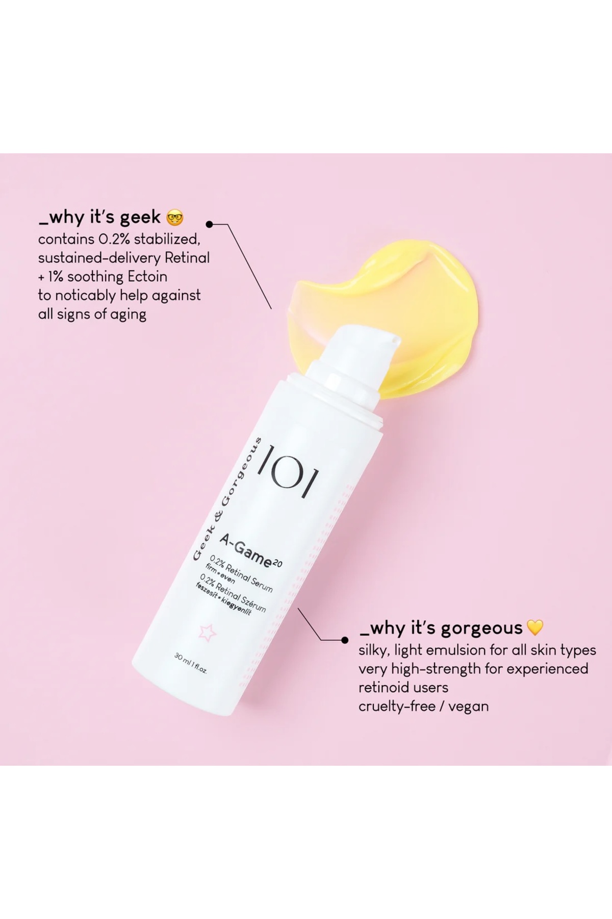 GEEK & GORGEOUS A-Game 20 Retinal Serum 0.2% Çok Yüksek Güç – Kırışıklık ve Leke Karşıtı