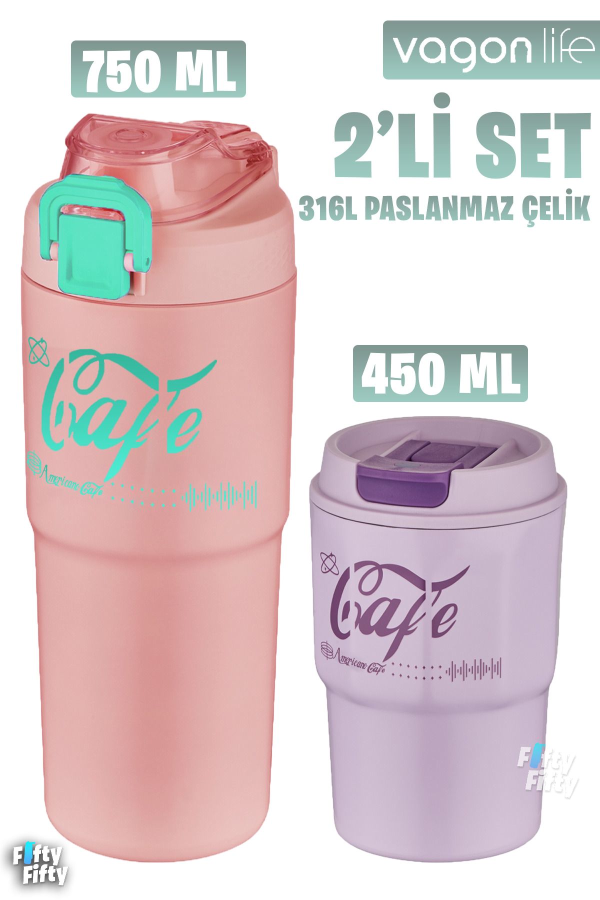 Genel Markalar 2’li Çelik Termos-kahve Bardağı Seti 750ml Çift Kullanım Termos//450ml Mug Kahve Bardağı