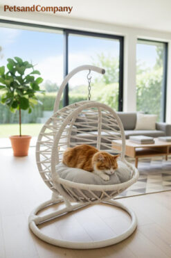 Genel Markalar El Örgüsü Kedi Salıncağı Krem Hamak ve Yatak, Kadın Emeği Lüks Tasarım Kedi Evi, Minderli