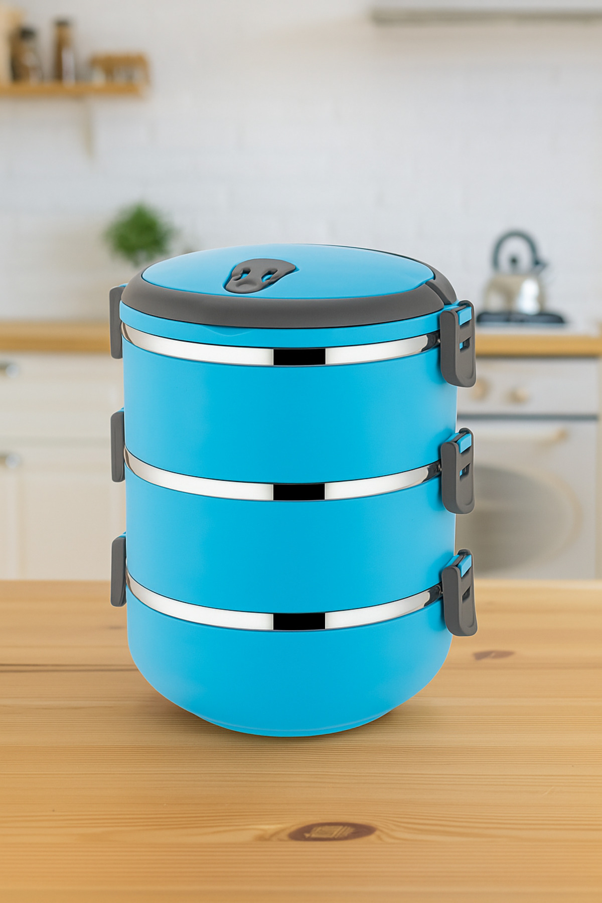 Genel Markalar Freshbox 3 Katlı Sızdırmaz Yemek Termosu Sefer Tası 1,8 Lt Mavi