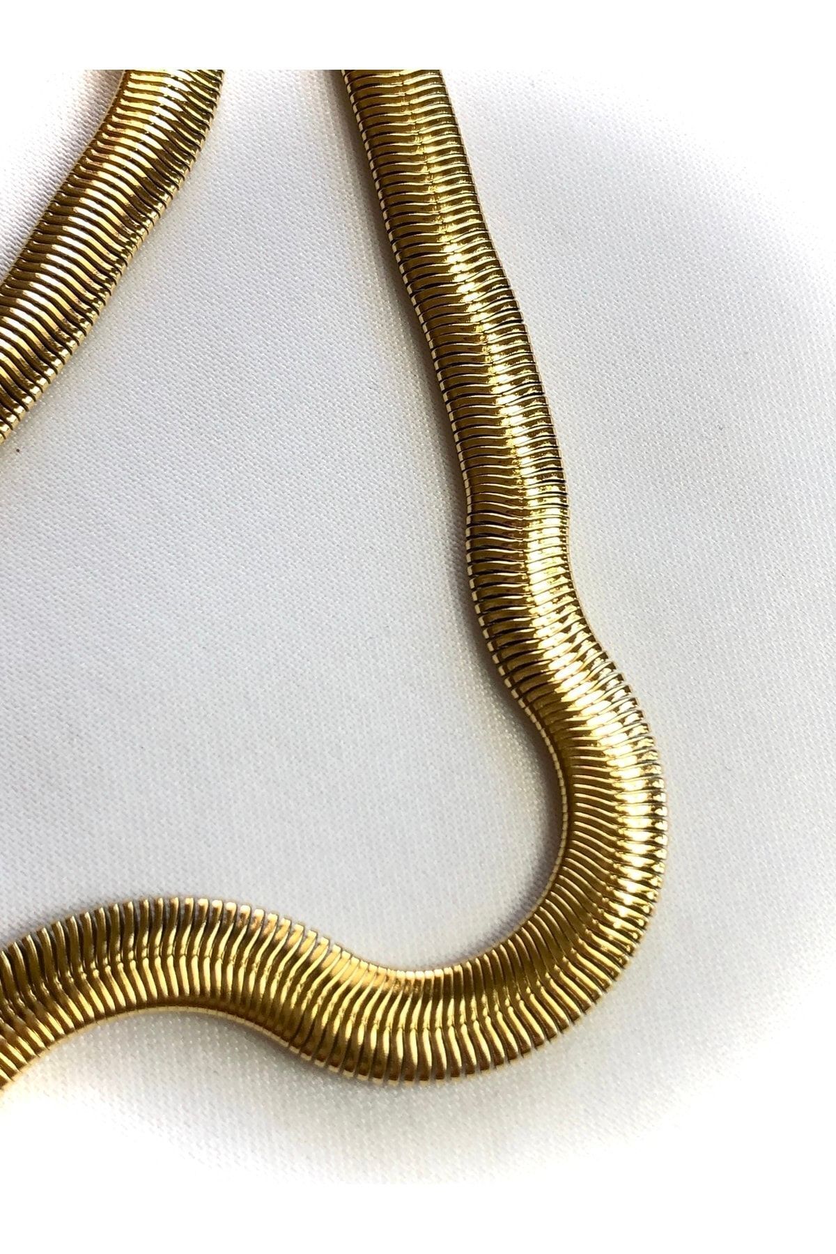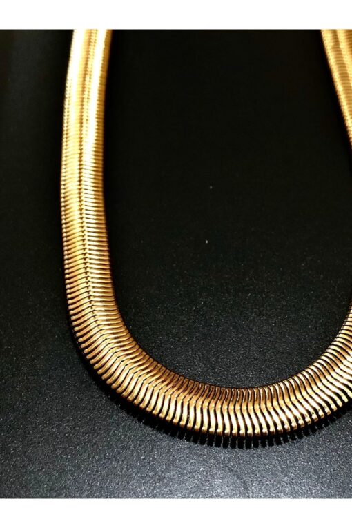 Genel Markalar Gold Italyan Kalın Zincir Yassı Çelik Kolye