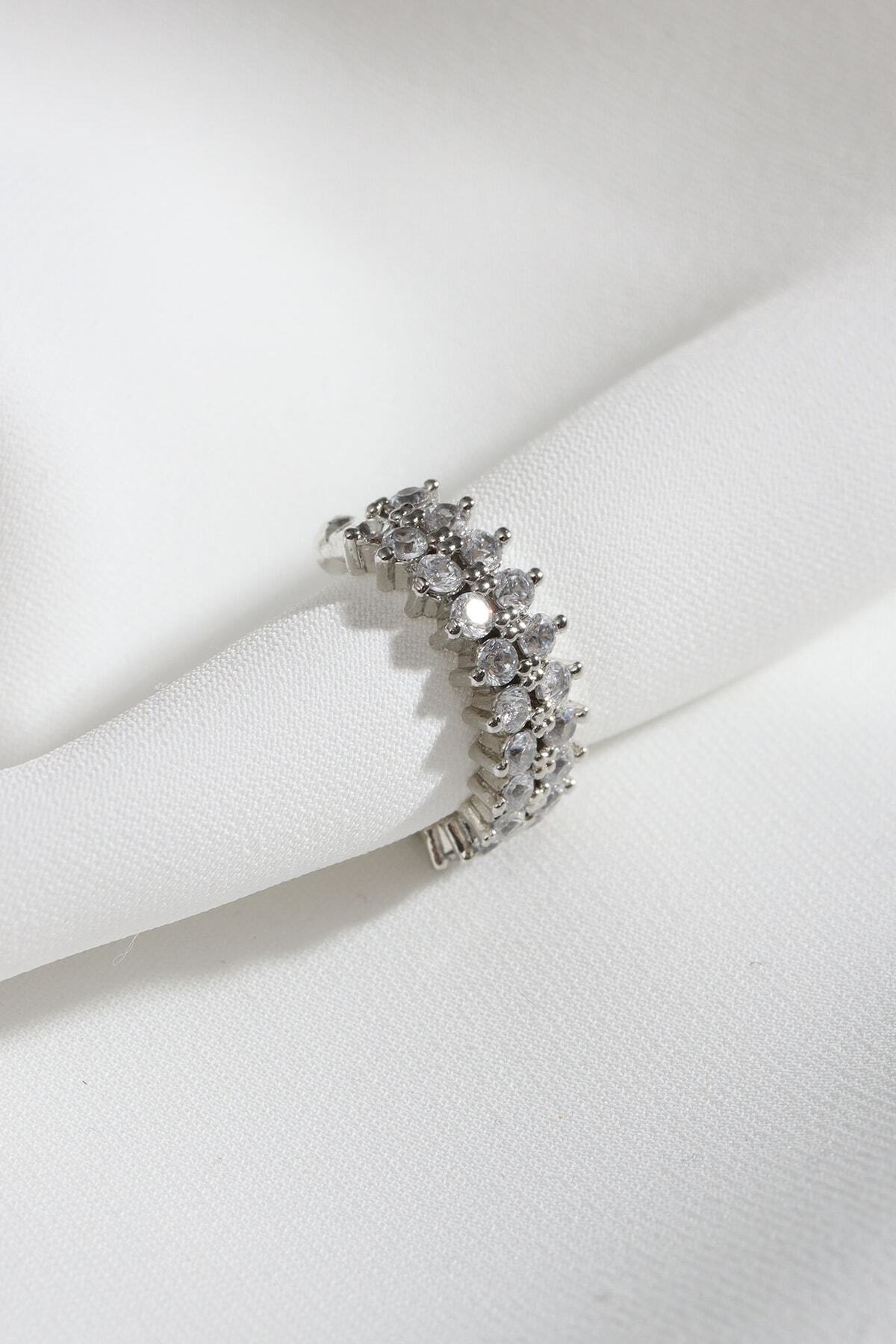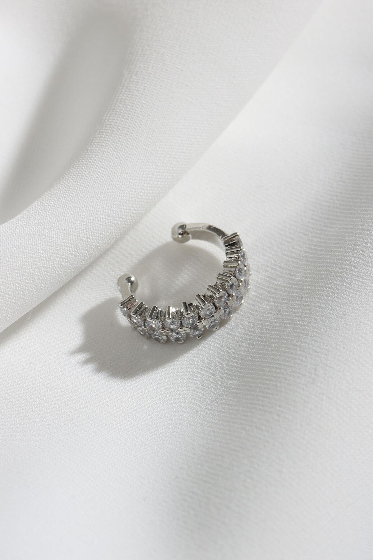 Genel Markalar Iki Sıralı Taşlı Tek Sıkıştırmalı Sılver Kıkırdak Küpe