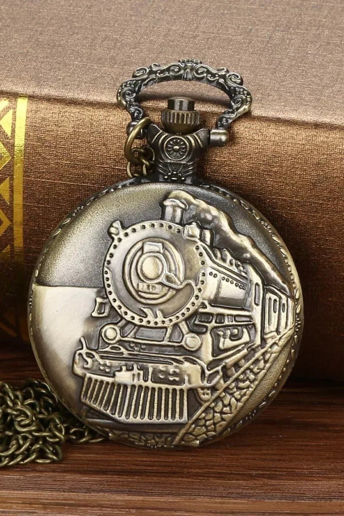 Genel Markalar Kabartmalı Tren Temalı Köstekli Cep Saati