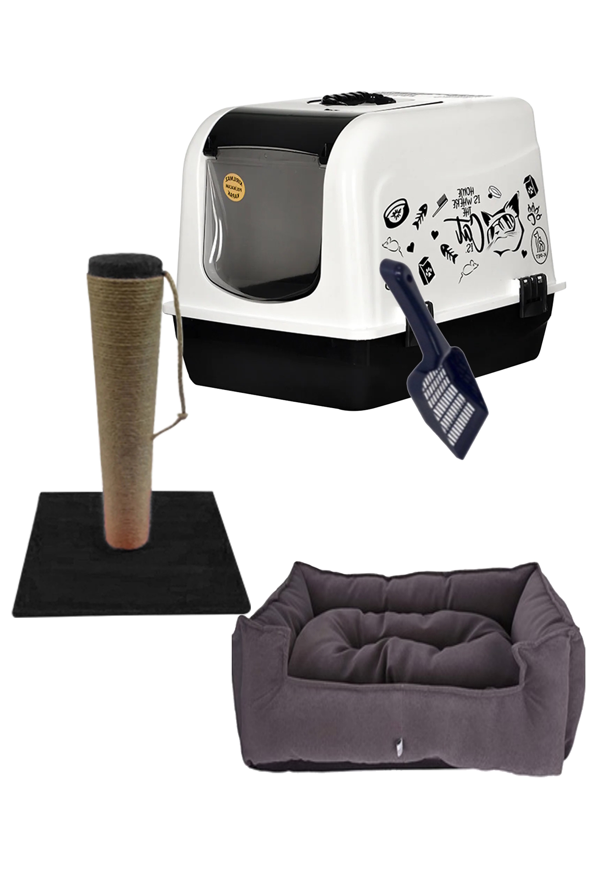 Genel Markalar Kapalı Maxi Kedi Tuvalet Kabı Üsten Açılır ( Dikdörtgen Yatak, Ve Tırmalama Seti )