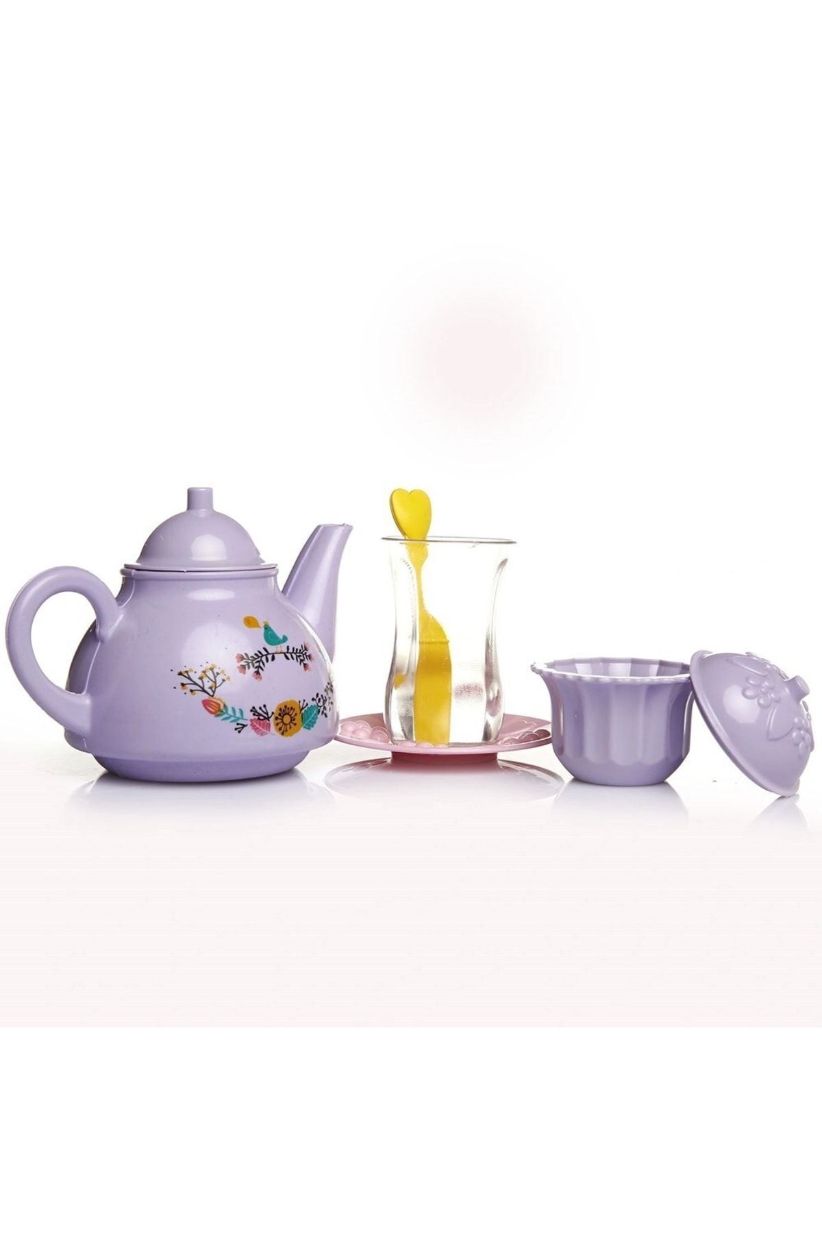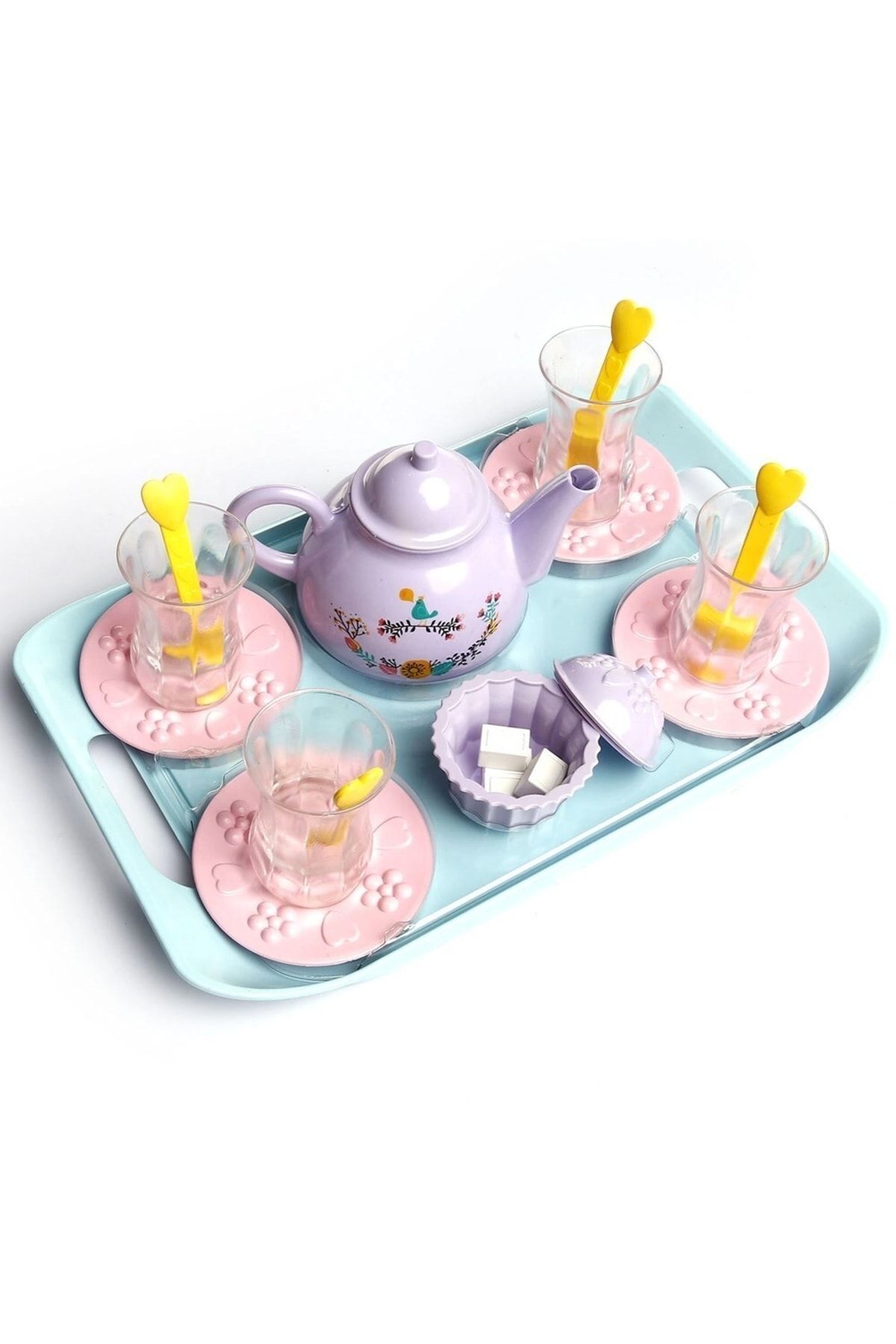 Genel Markalar İnce Belli Tepsili Oyun Seti Çay Servis Oyuncağı Renkli Eğitici Set