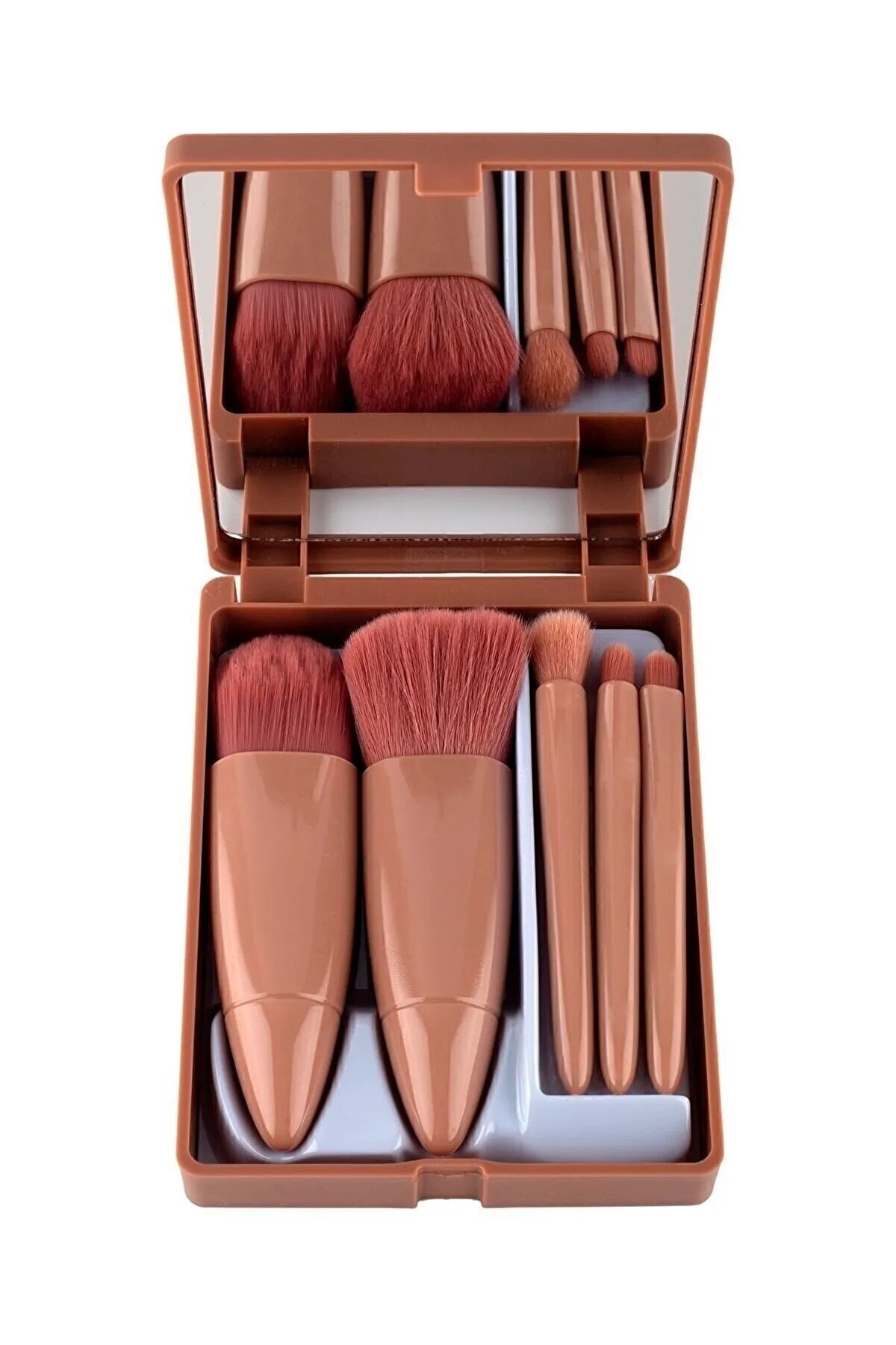 Genel Markalar Masis -Taşınabilir Aynalı 5’li Makyaj Fırça Seti Profesyonel Allık Dudak Kaş Kapatıcı / Makeup Brush