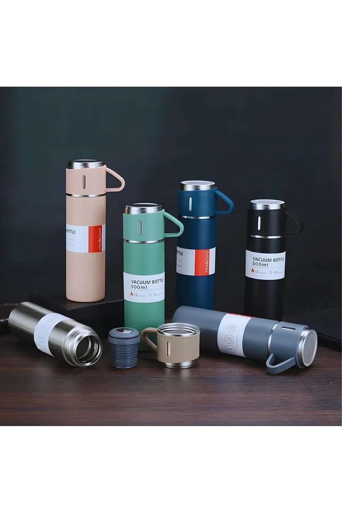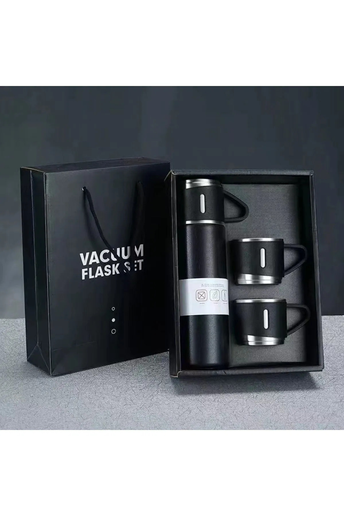 Genel Markalar Paslanmaz Çelik Termos 3 Bardaklı Termos Seti Vakumlu Termos Set Çanta Hediyeli