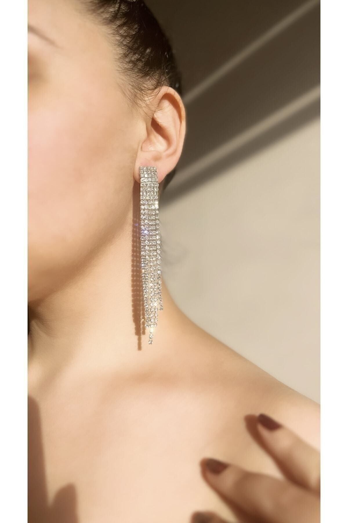 Genel Markalar Su Yolu Taşlı Sallantılı Abiye Küpe